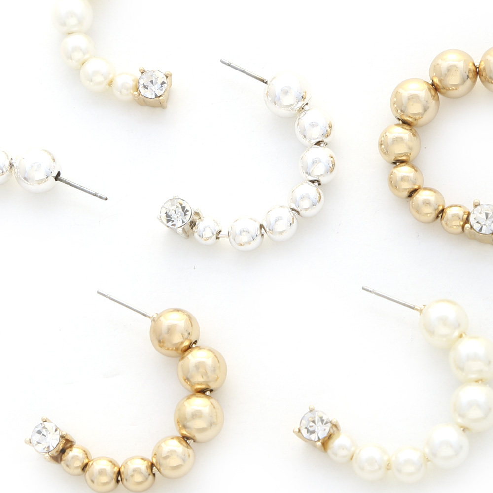 METAL HOOP GEMSTONE DANGLE EARRING 3 PAIR SET