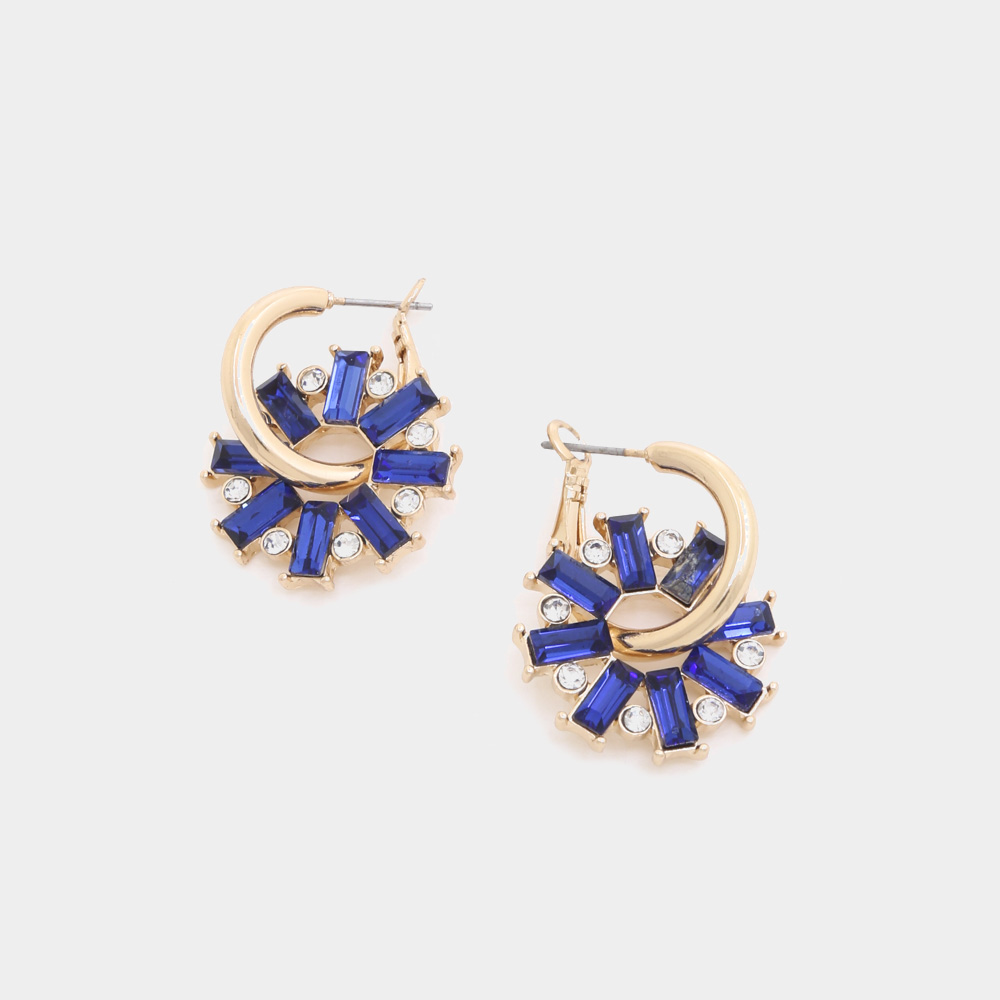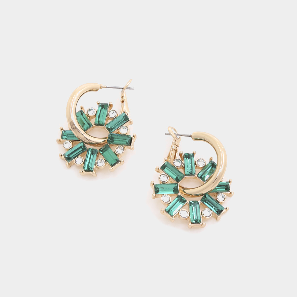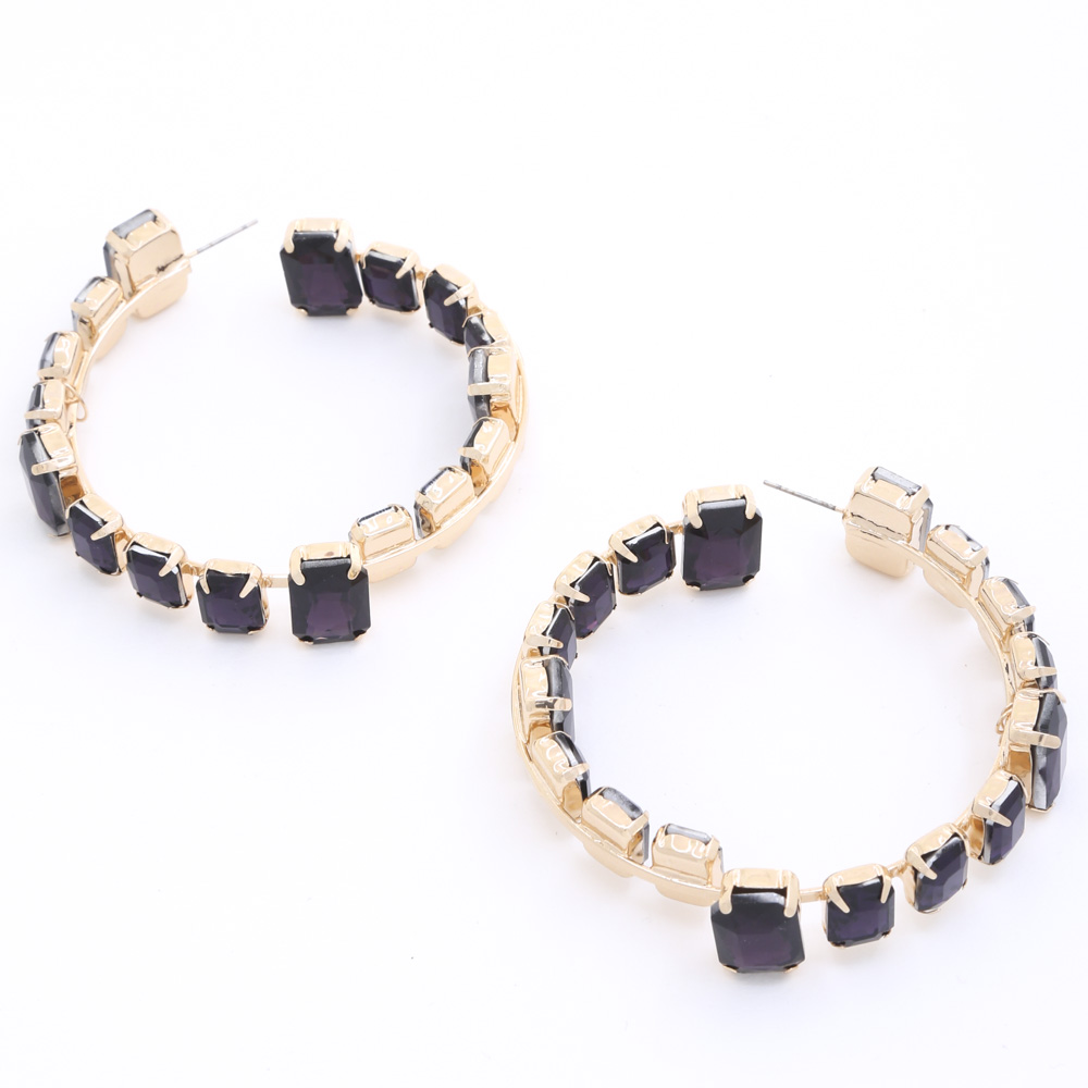 CRYSTAL EDGE METAL OPEN HOOP EARRING