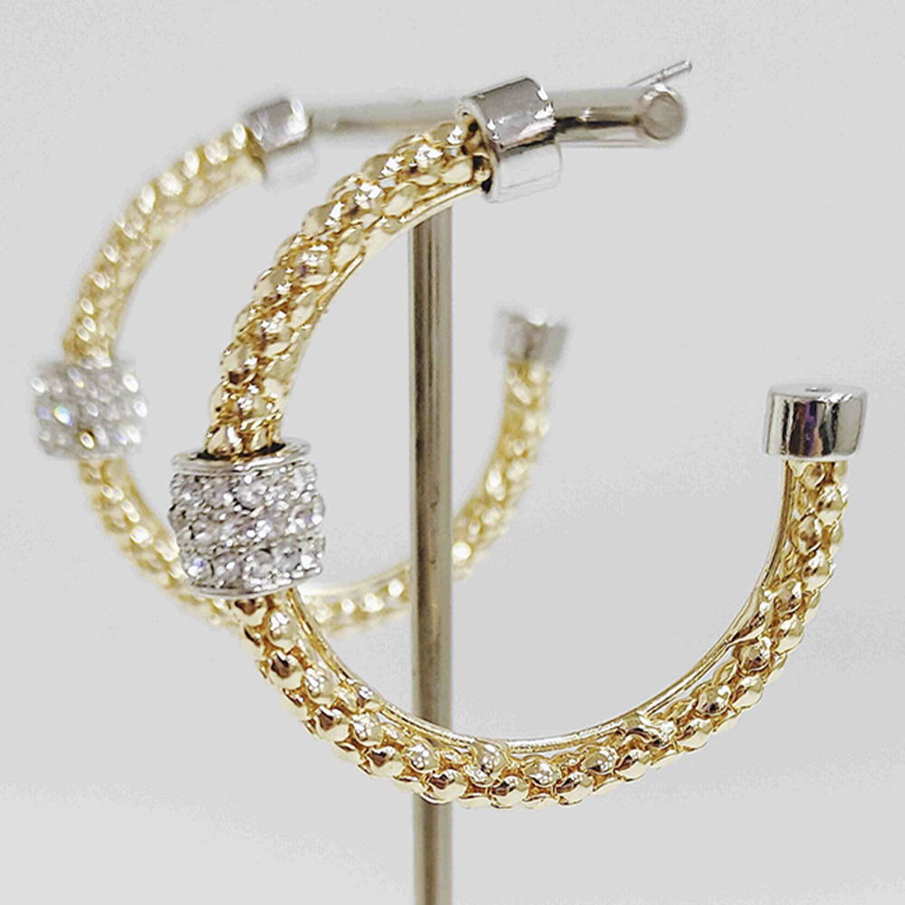 RHINESTONE ALUMINUM COATING TWISTED HOOP EARRING