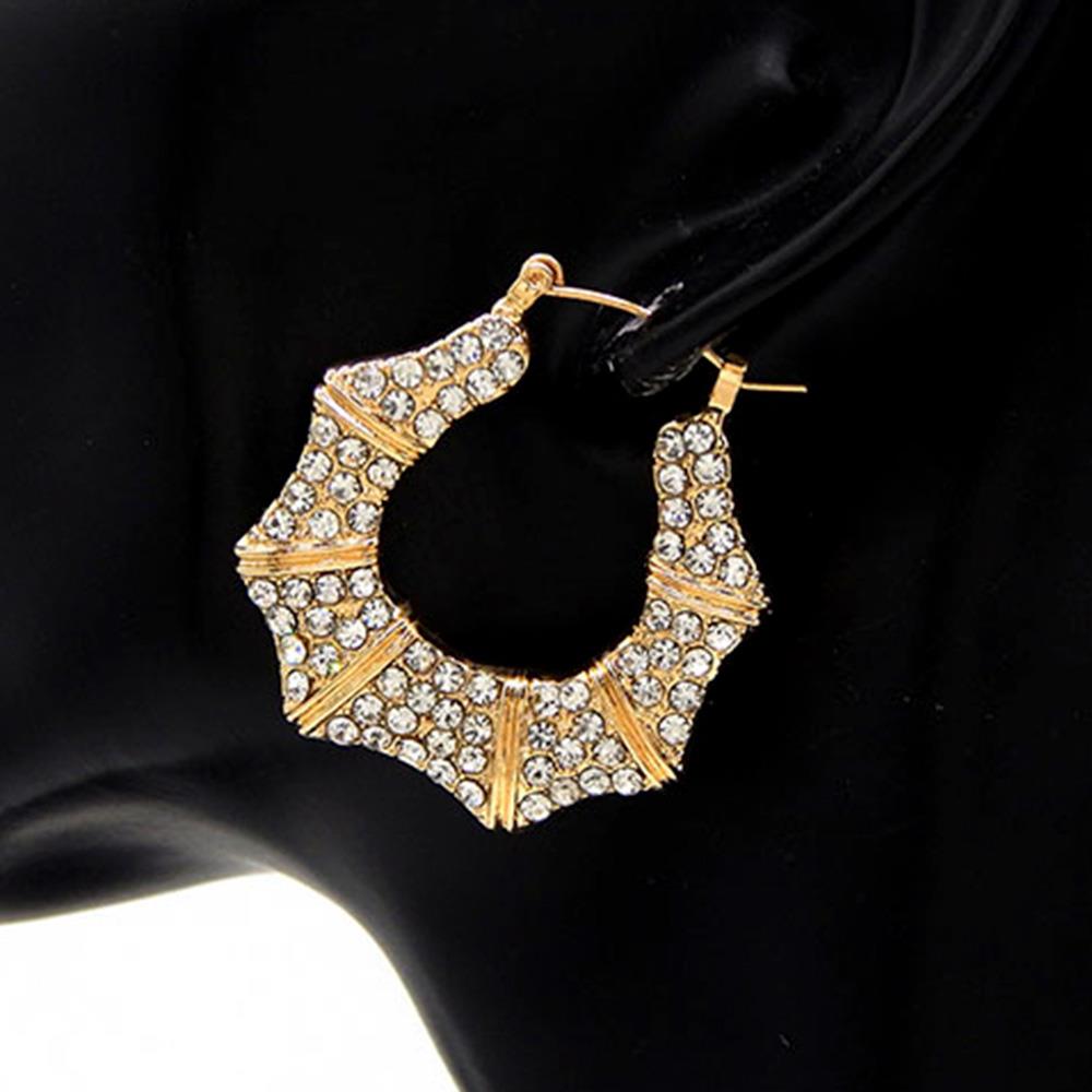 RHINESTONE BAMBOO SHAPE HOOP EARRING