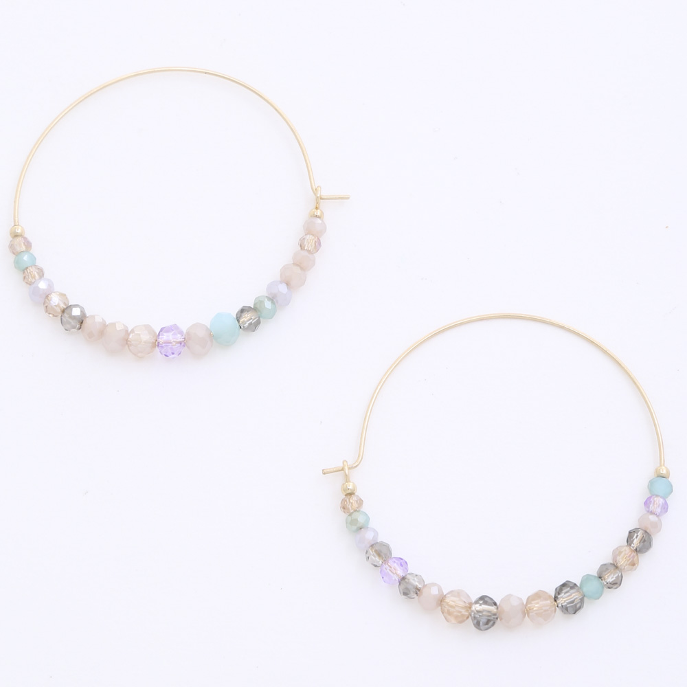 SODAJO PEARL CRYSTAL BEAD OPEN CIRCLE EARRING
