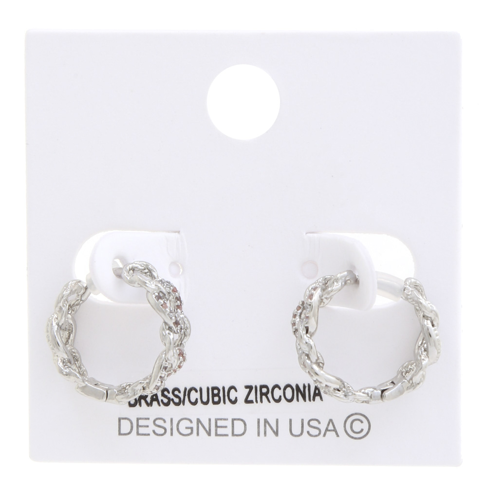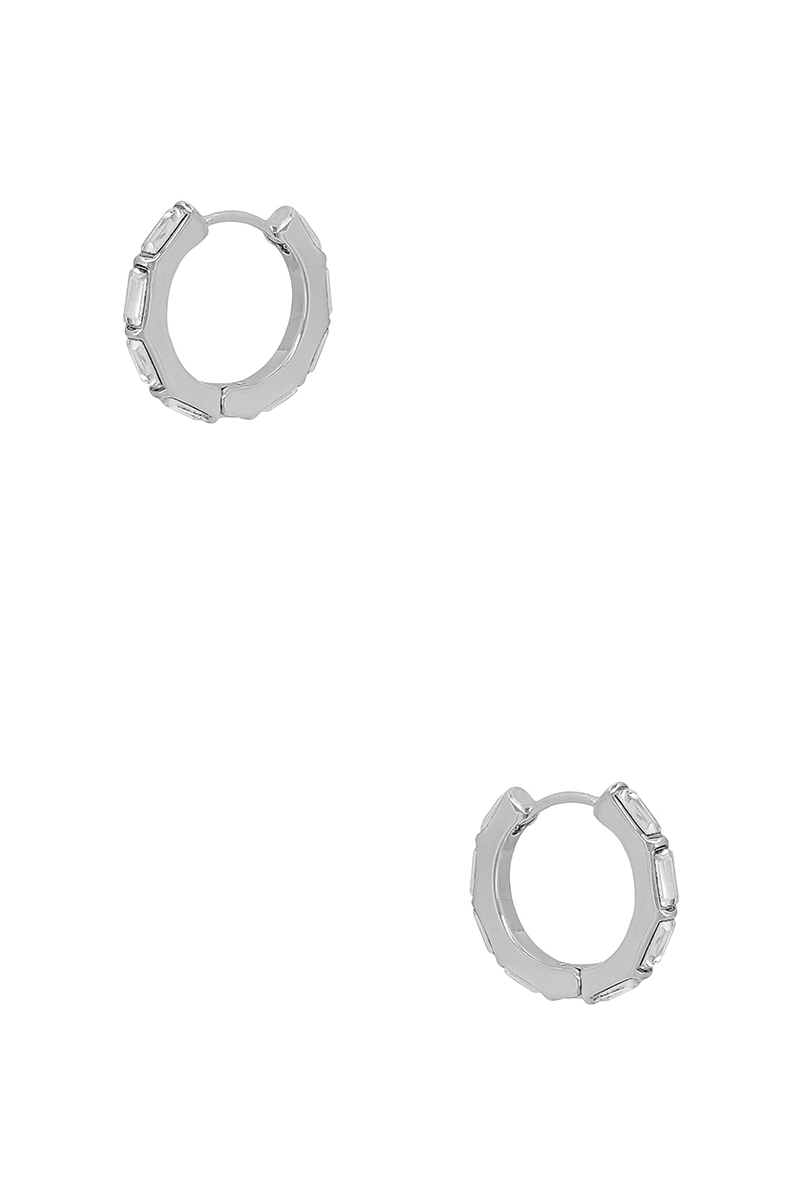 BRASS RHODIUM PLATED CLEAR CZ HUGGIES EARRING