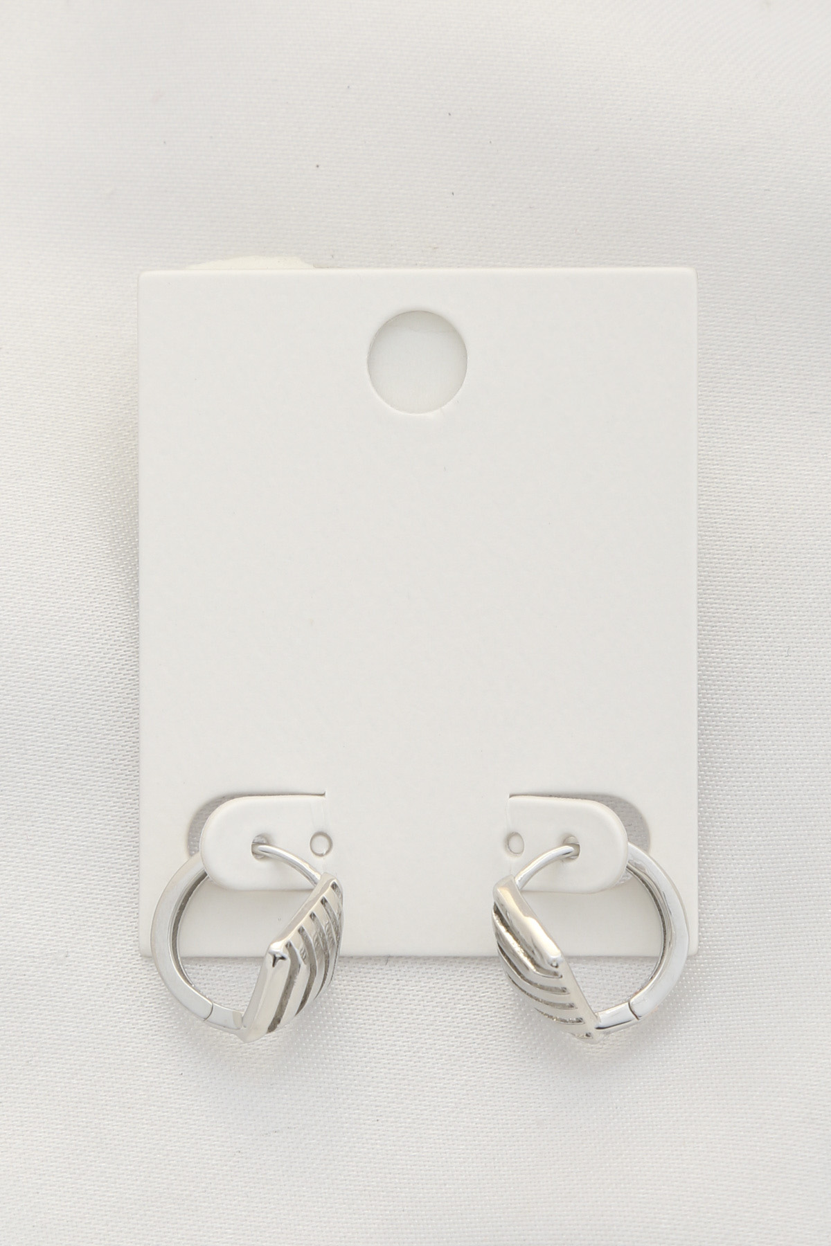 14K GOLD WHITE GOLD DIPPED FEATHER HUGGIE EARRINGS
