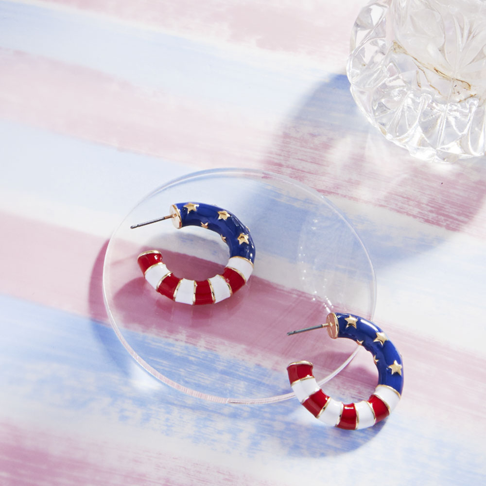 STAR SHAPED ENAMEL W/ AMERICAN FLAG PATTERN HYPOALLERGENIC EARRING