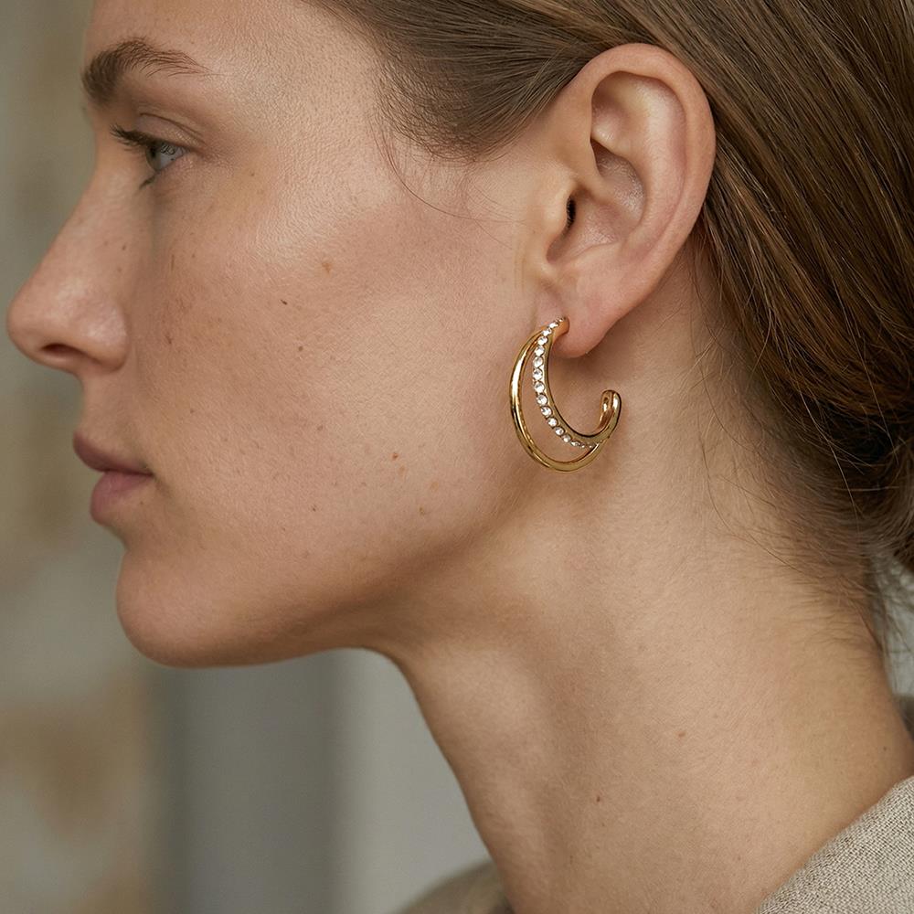 CROSSED METAL LAYERED OPEN HOOP WATER RESISTANT EARRING