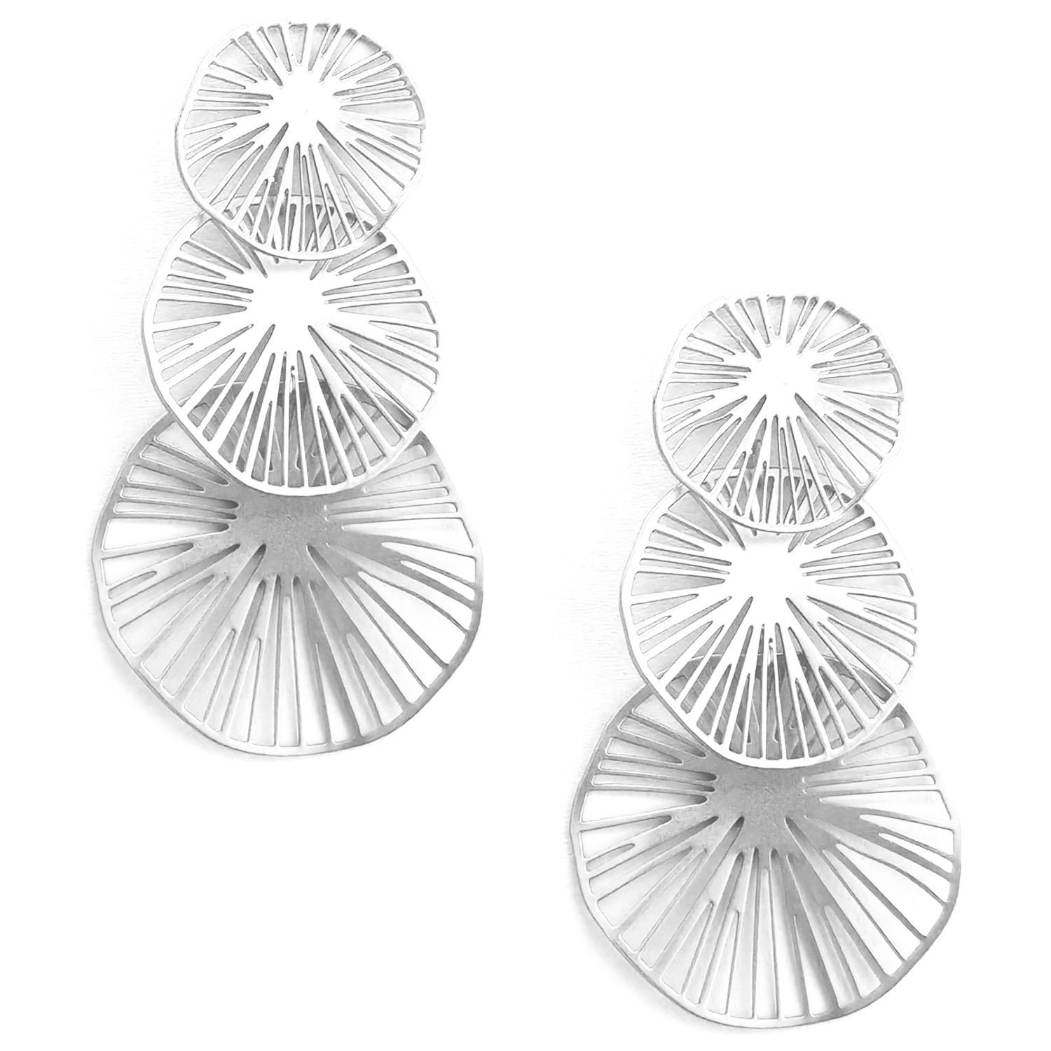 ROUND LINED METAL DANGLE EARRING