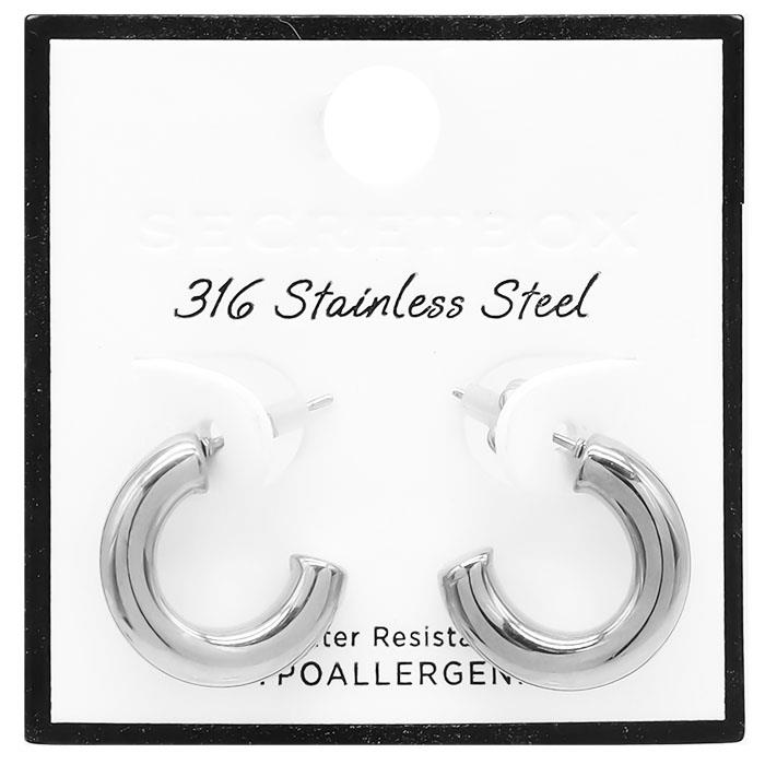 SECRET BOX STAINLESS STEEL SQUARE HOOP EARRING