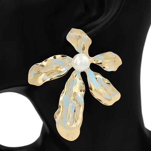 METAL PEARL FLOWER STATEMENT EARRING