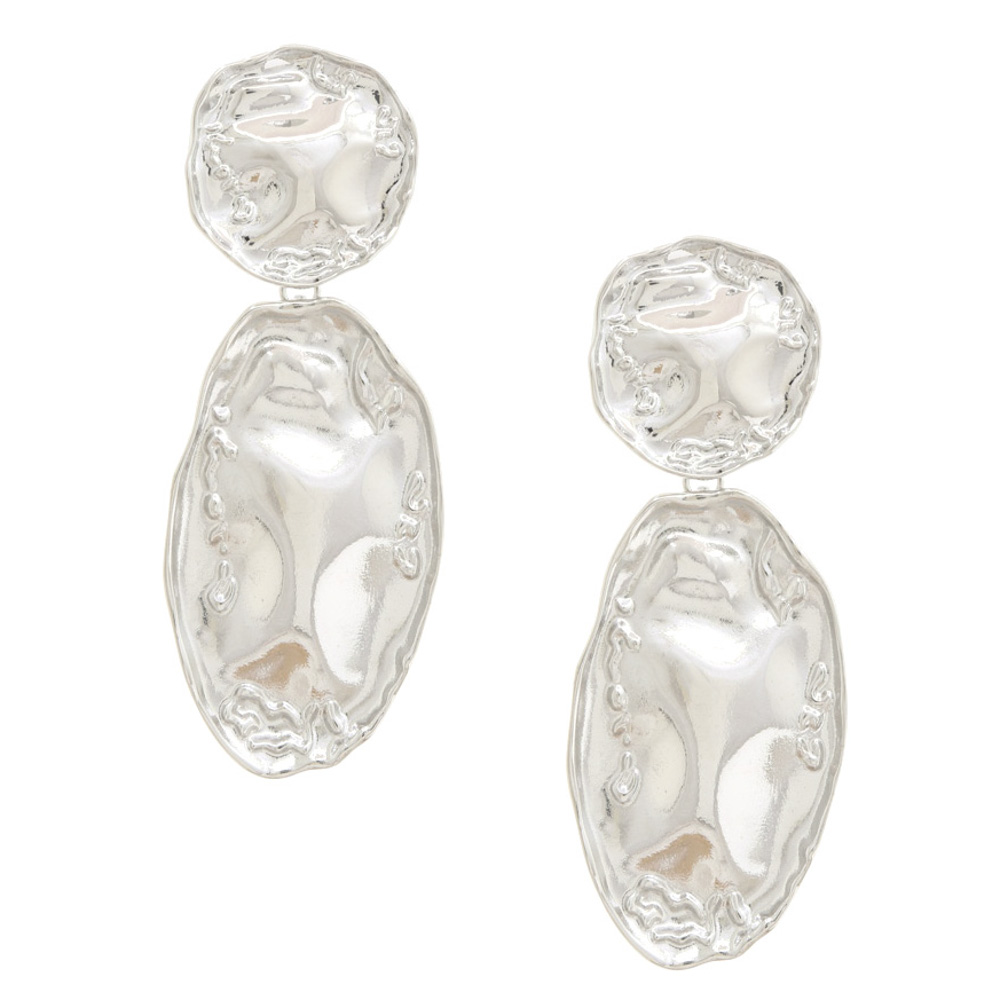 HAMMERED METAL CIRCLE OVAL LINK EARRING