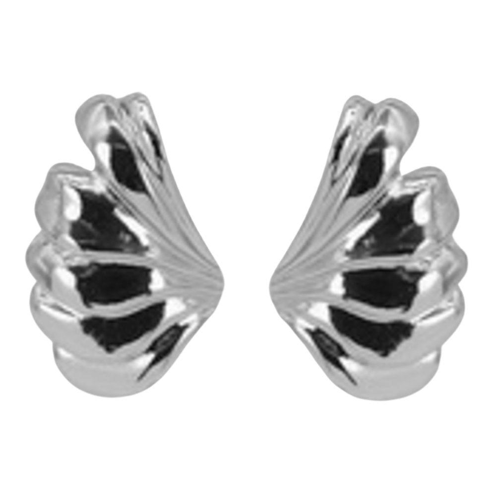 14K GOLD WHITE GOLD DIPPED CUTOUT OVAL STUD EARRING