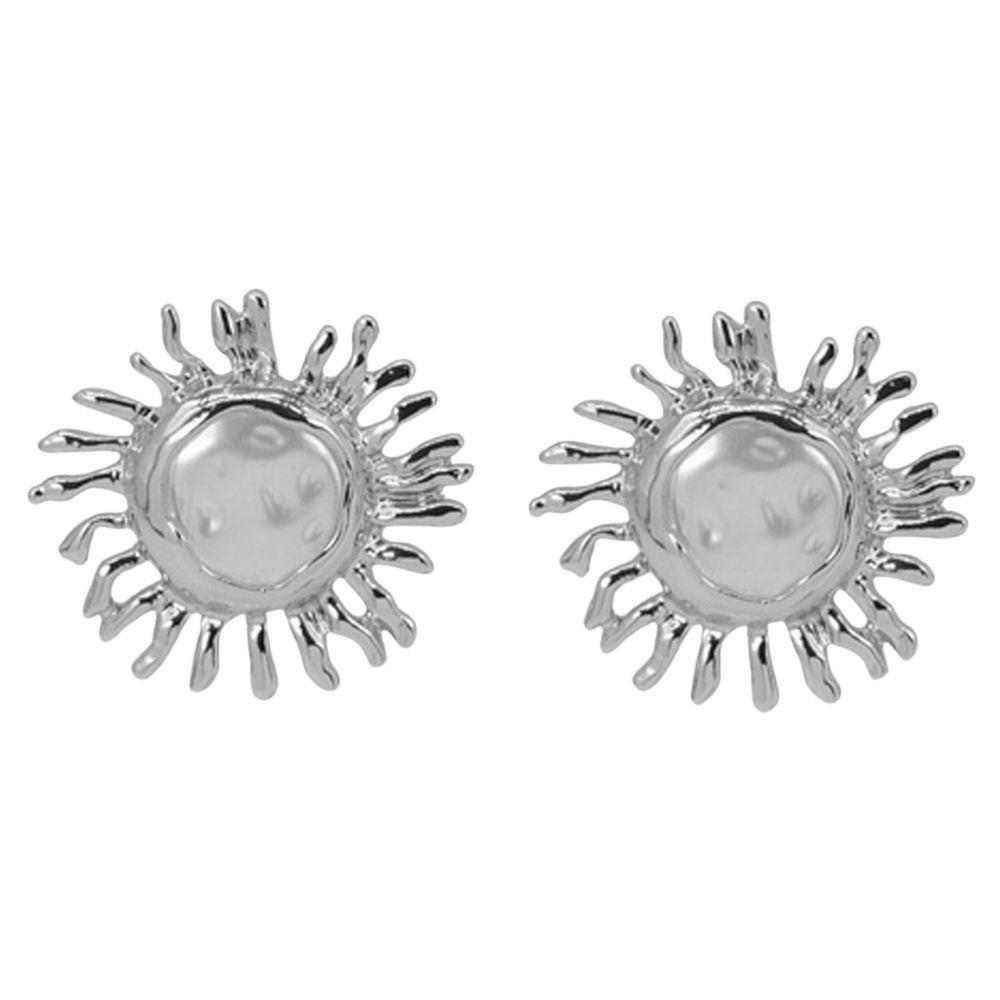 2" MOTHER OF PEARL SHELL POST ROUND METAL DROP EARRINGS