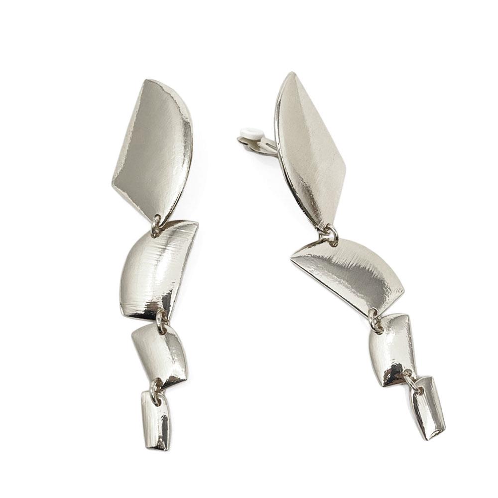 METAL ABSTRACT SEGMENT DROP CLIP ON EARRING