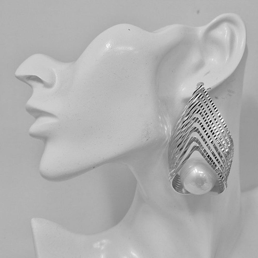 METAL FILIGREE ARROW PEARL DROP STATEMENT EARRING