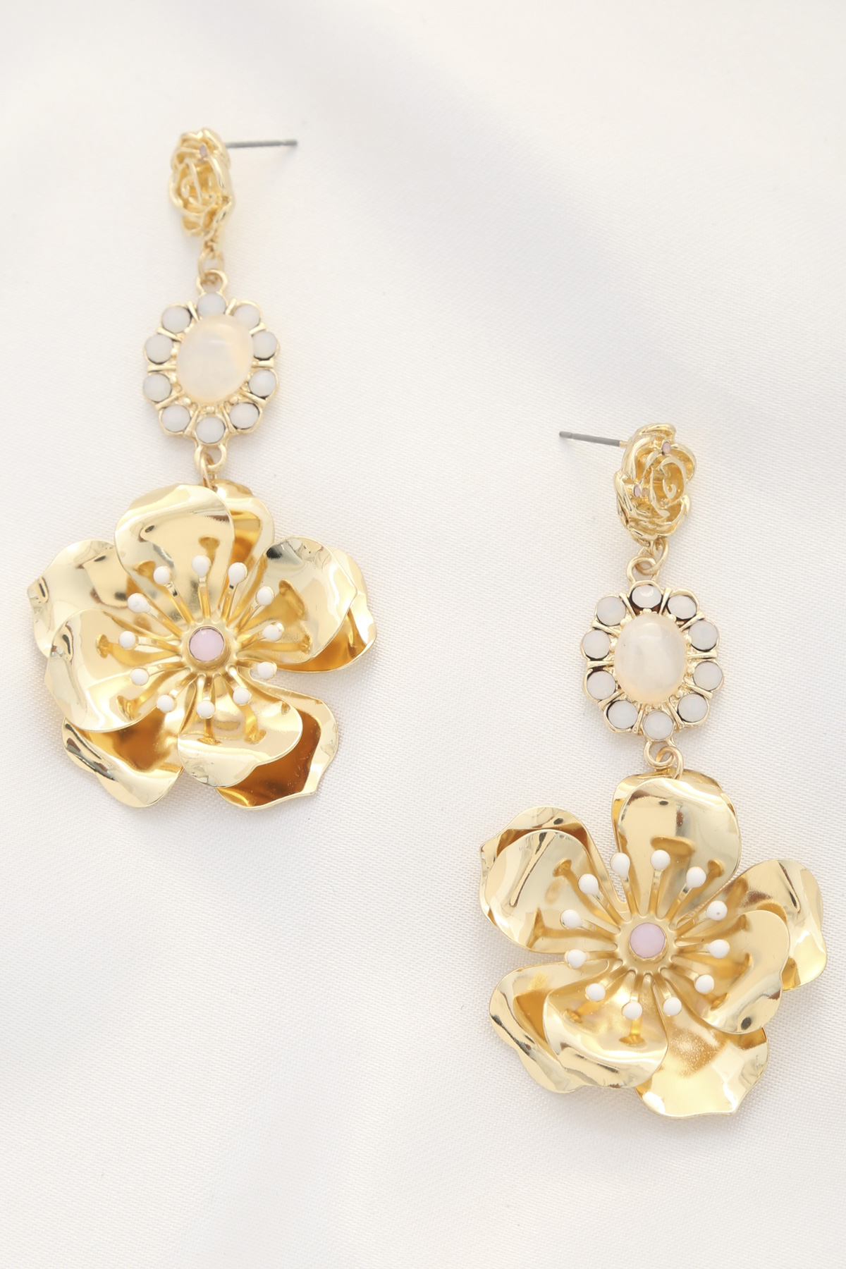 FLOWER METAL PEARL BEAD DANGLE EARRING