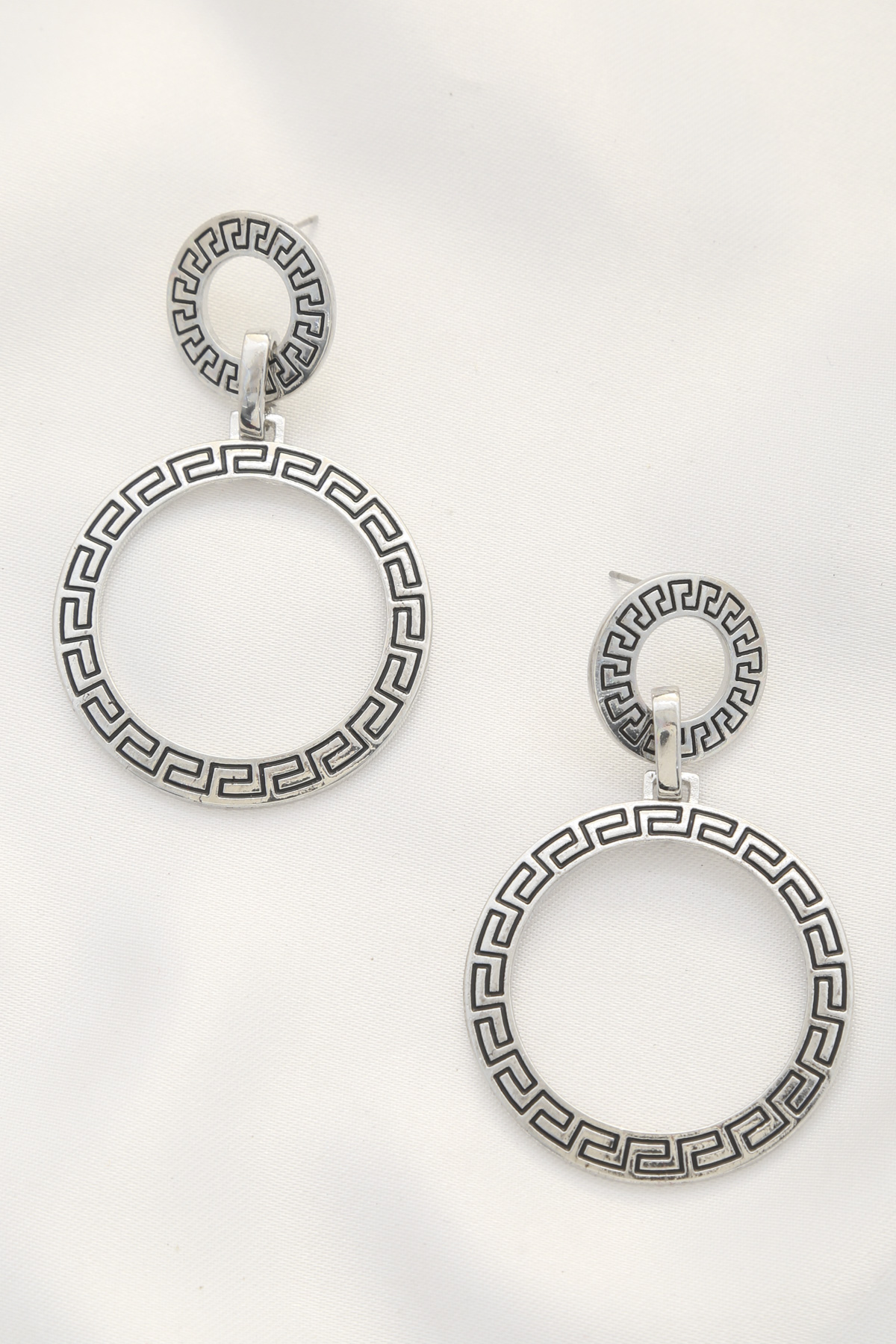 DOUBLE CIRCLE GREEK PATTERN DANGLE EARRING