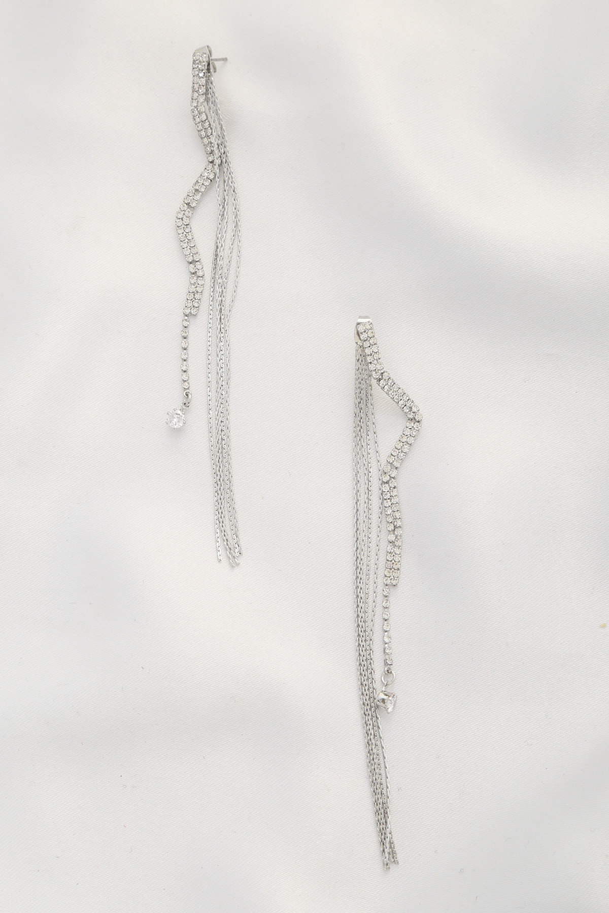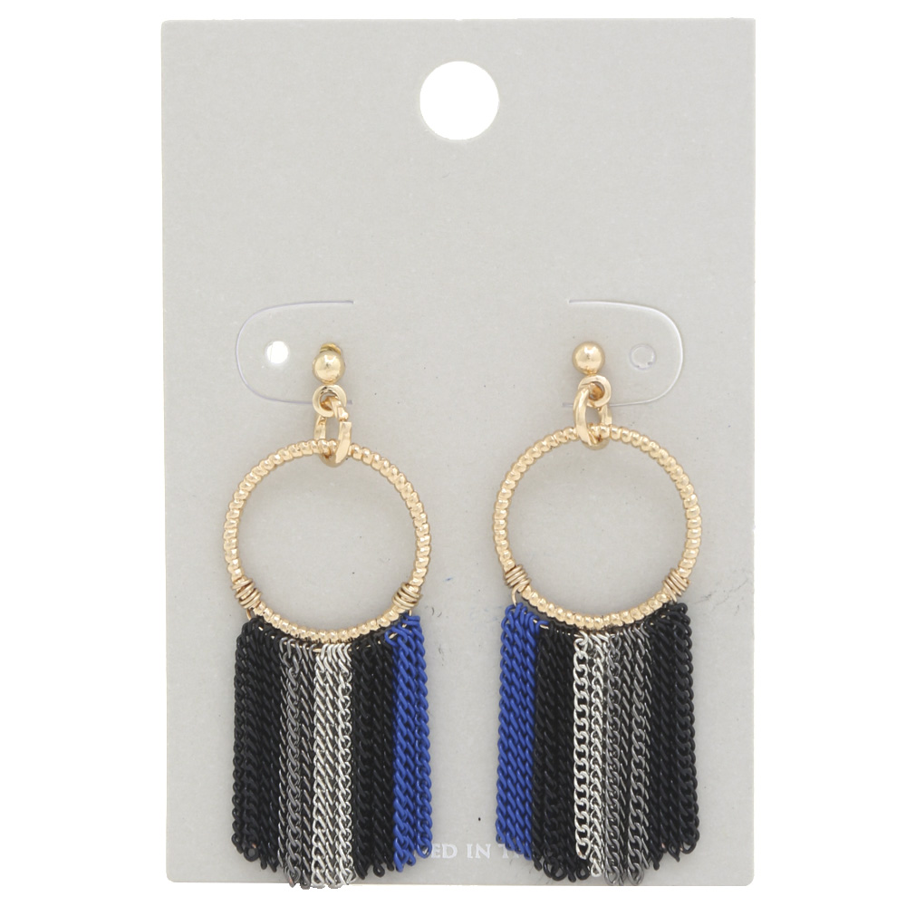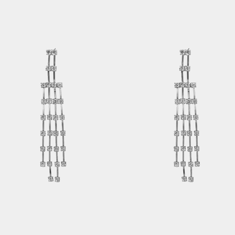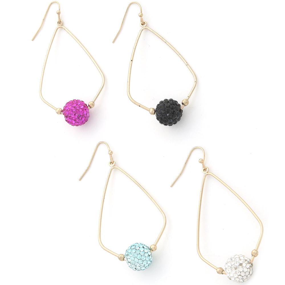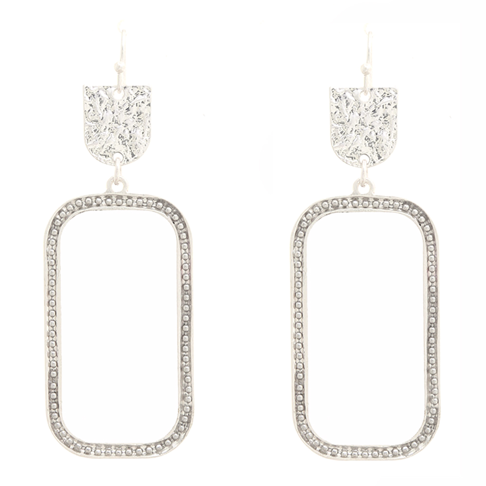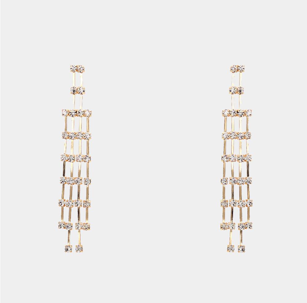 CIRCLE RECTANGLE CRYSTAL TEARDROP METAL EARRING