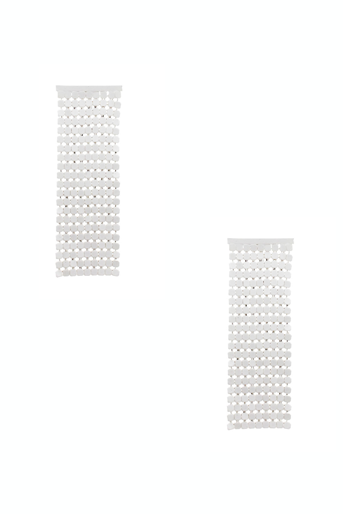SQUARE ROUND PEARL BEAD LINK DANGLE METAL EARRING