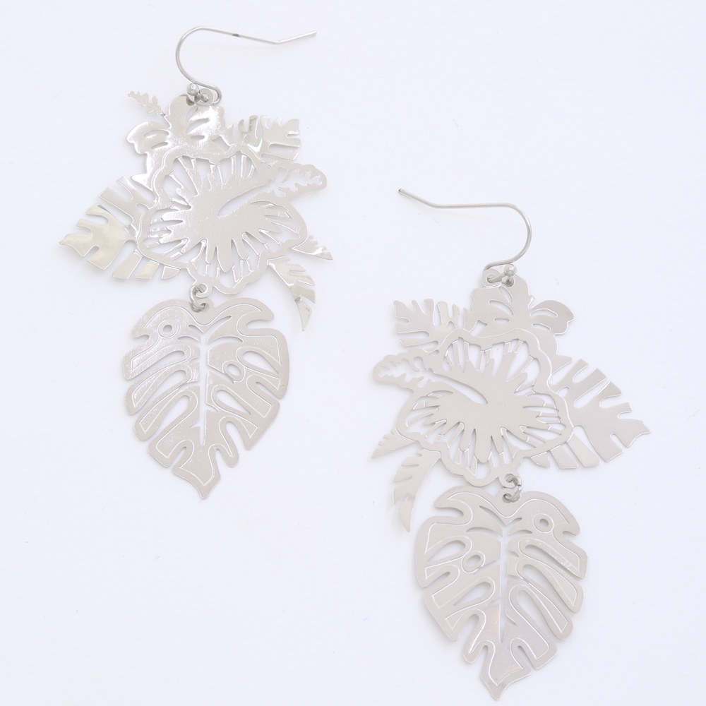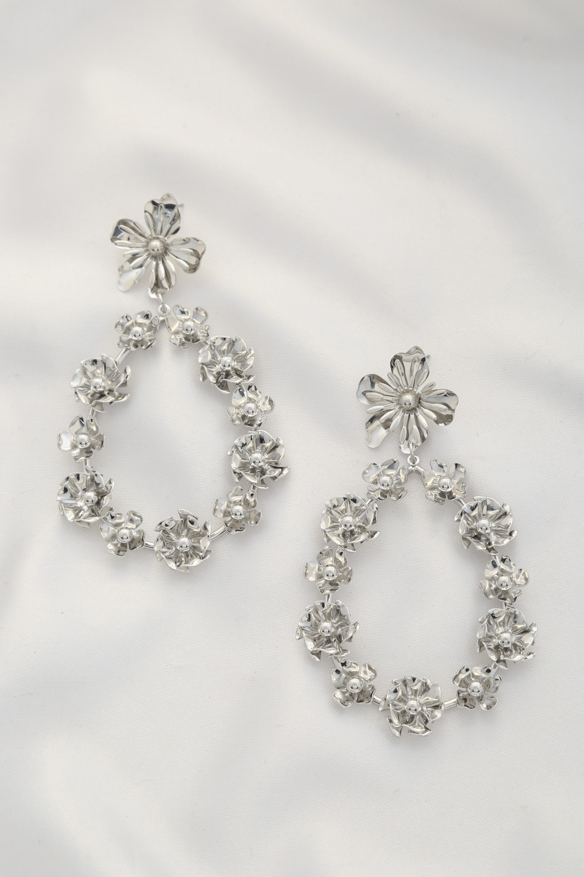 OVERSIZED METAL FLOWER PEARL BEAD EARRING