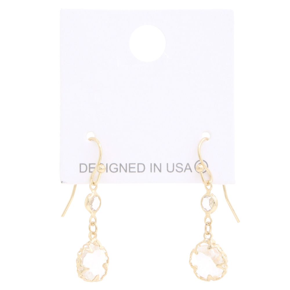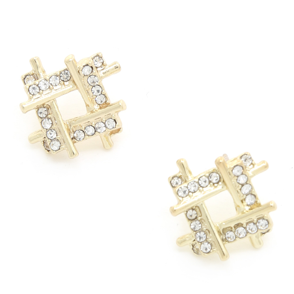 14K GOLD DIPPED SQUARE ROUND CRYSTAL EARRING