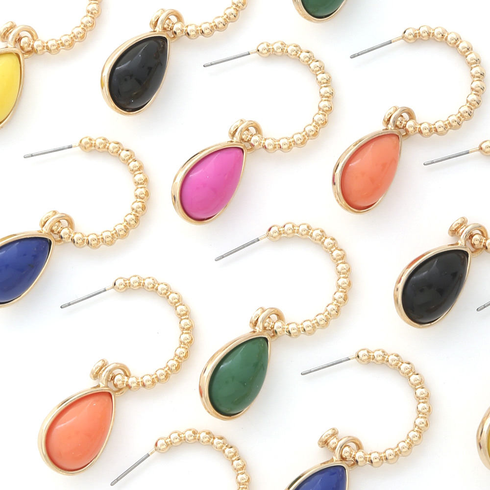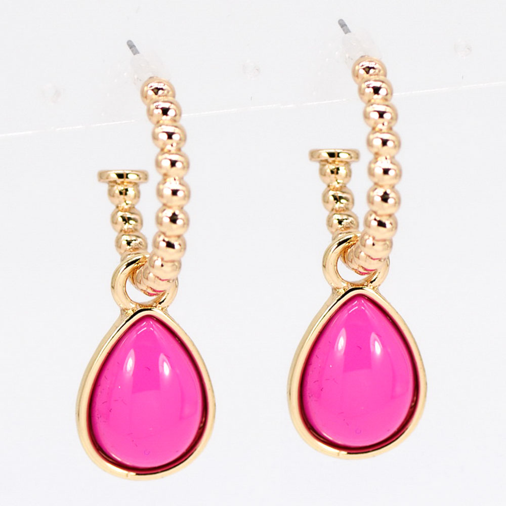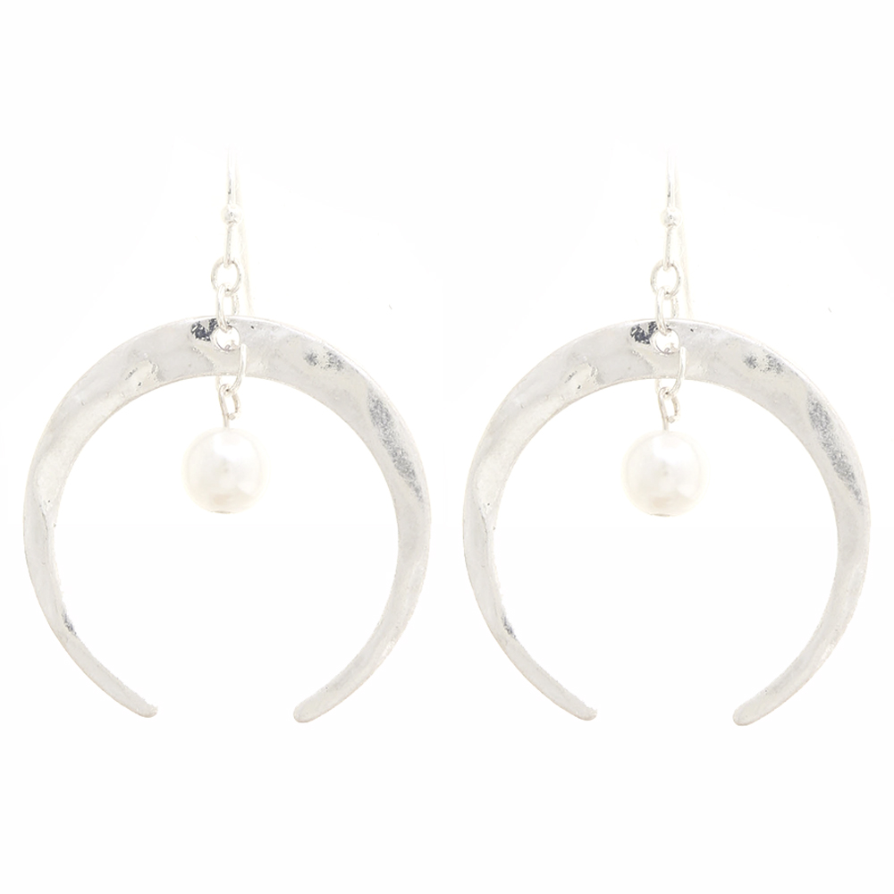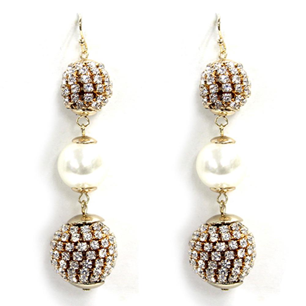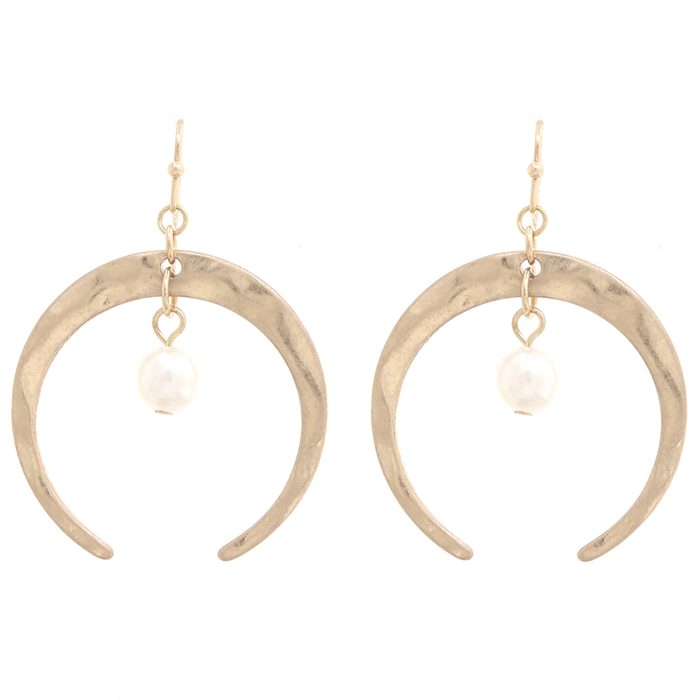 TEARDROP PEARL BEAD METAL DANGLE EARRING