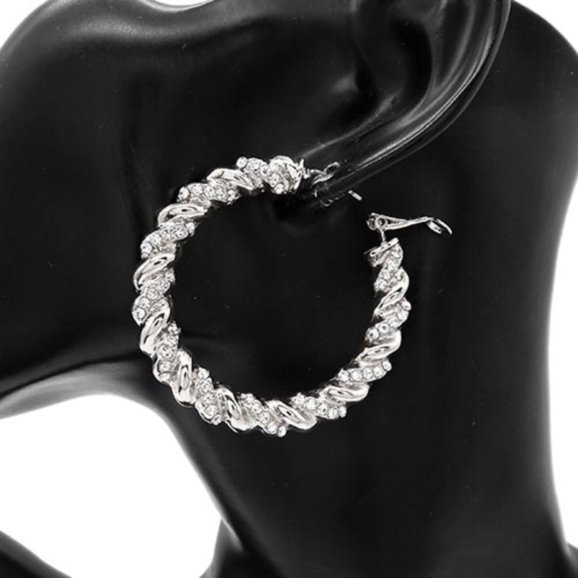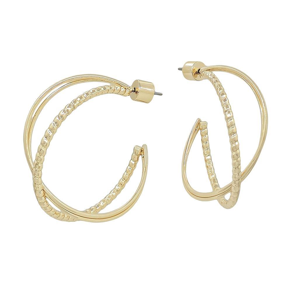 CRISS CROSS TEXTURED METAL HOOP EARRING