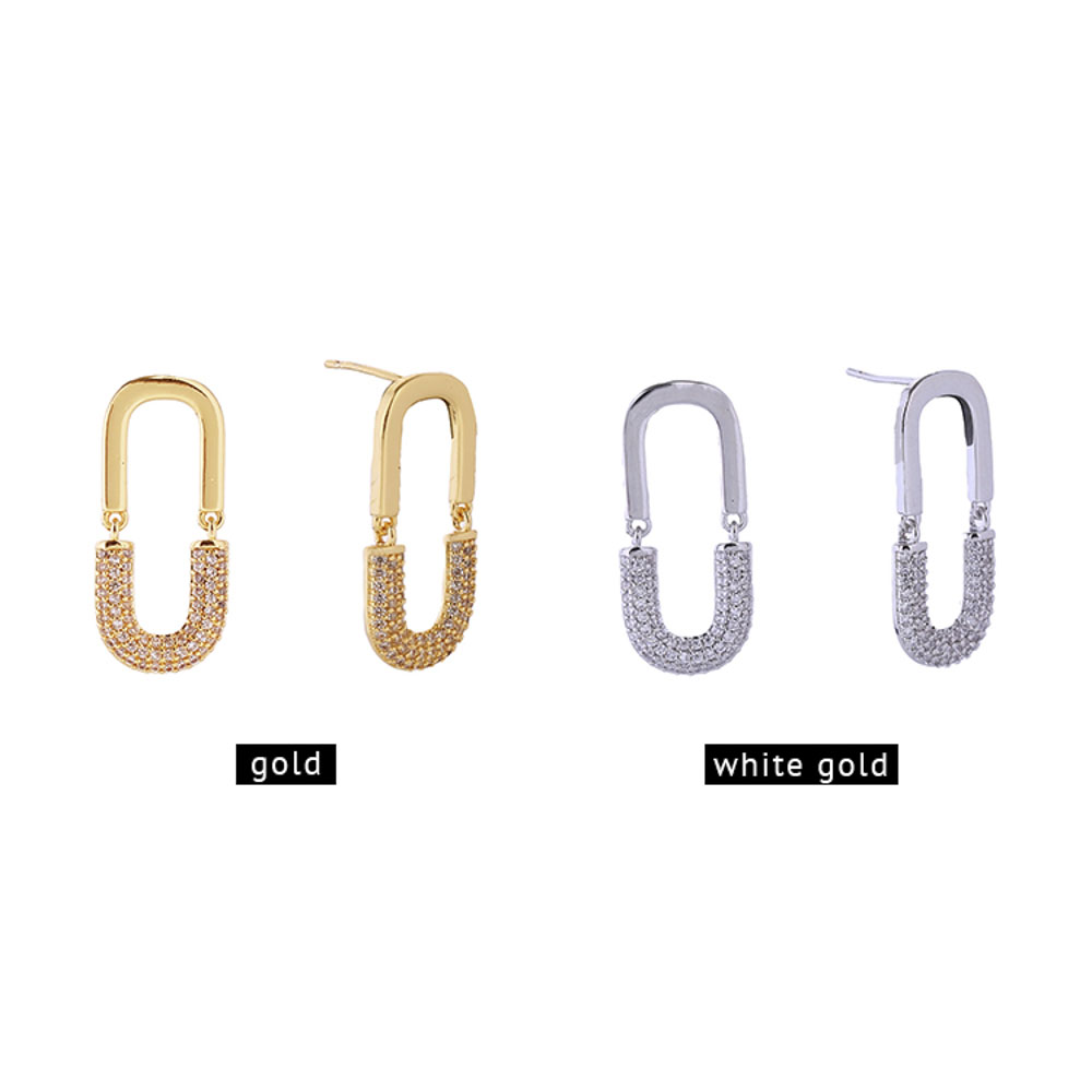 BRASS CUBIC ZIRCONIA PAVE HORSEBIT DROP EARRING