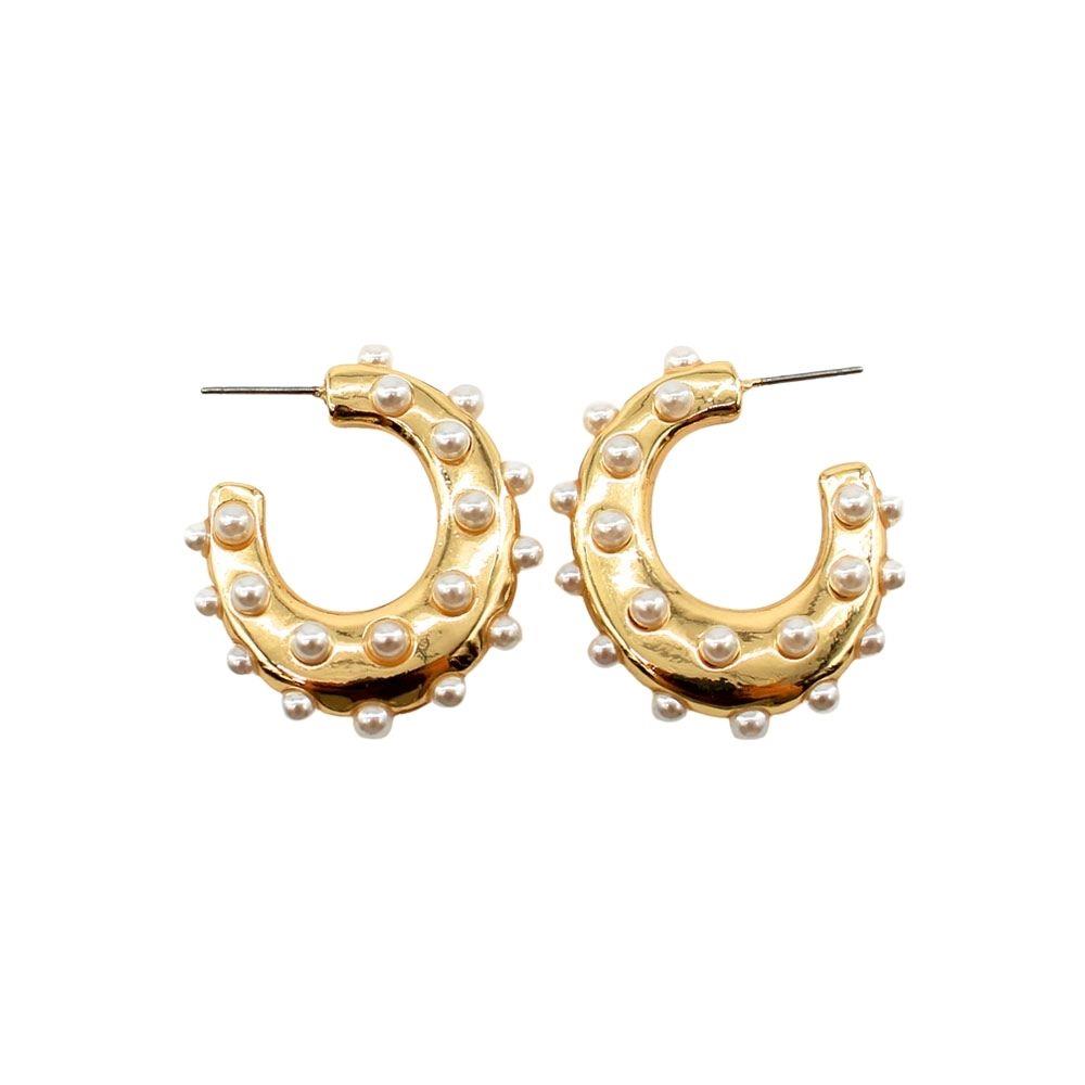 PEARL BEAD HAMMERED METAL ROUND EARRING