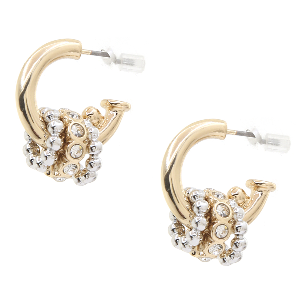 METAL OPEN DESIGN CRYSTAL BEAD DANGLE EARRING