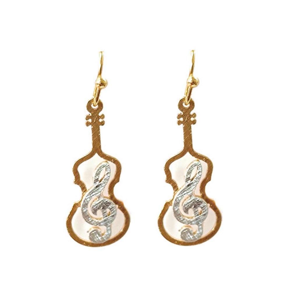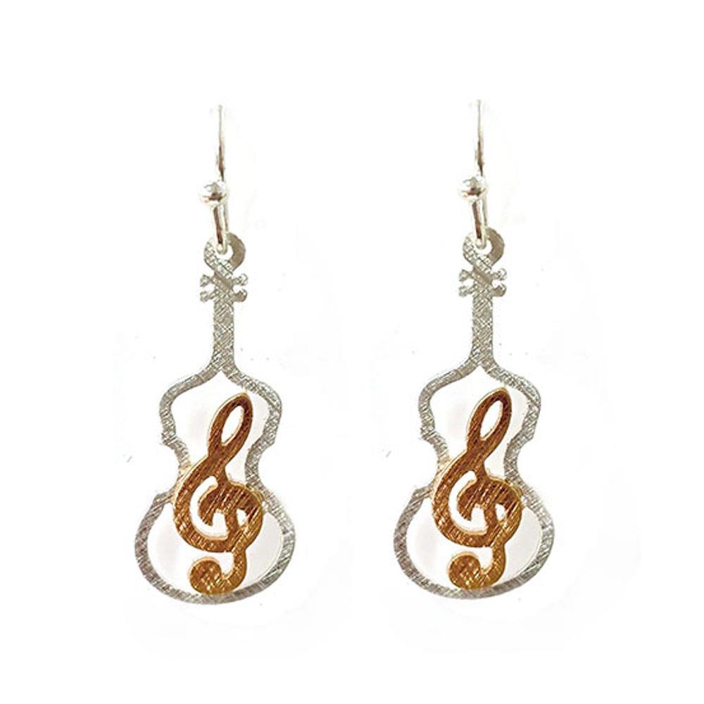 TWO TONE METAL VIOLIN DANGLE EARRING