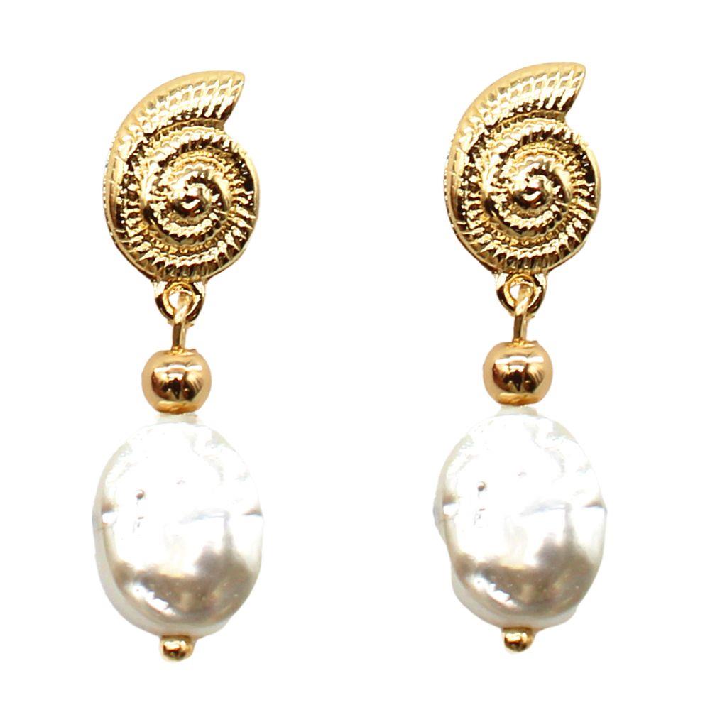 SPIRAL SHELL PEARL DANGLE STATEMENT EARRING