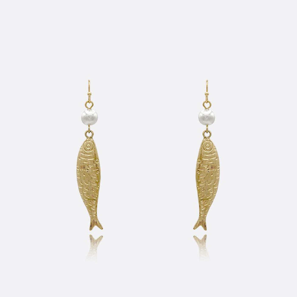 SODAJO PEARL BEAD SEASHELL CHARM GOLD DIPPED DANGLE EARRING