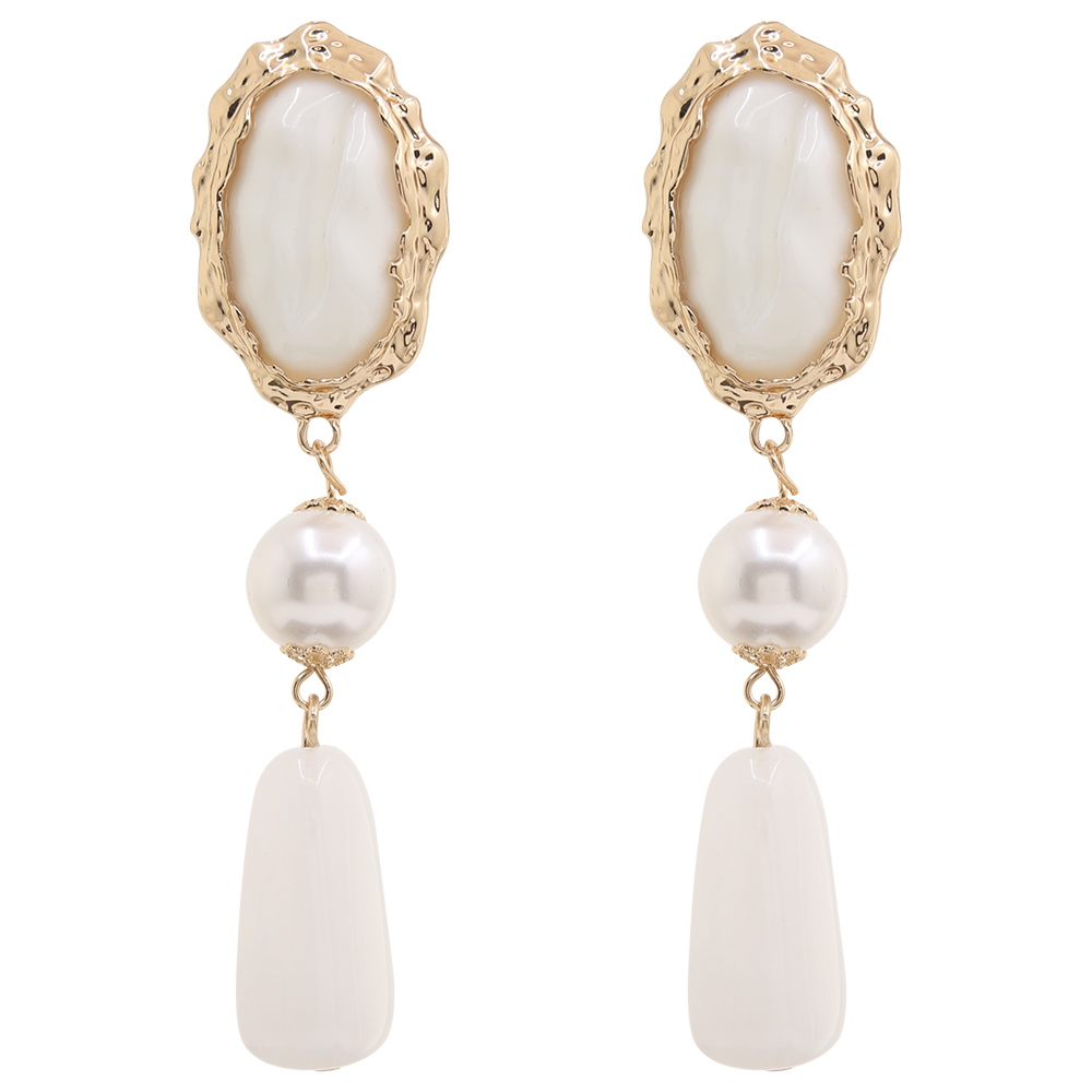 PEARL OVAL HAMMER DANGLE EARRINGS