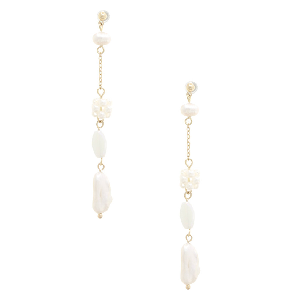 SEASHELL PEARL BEAD CHAIN DANGLE EARRING