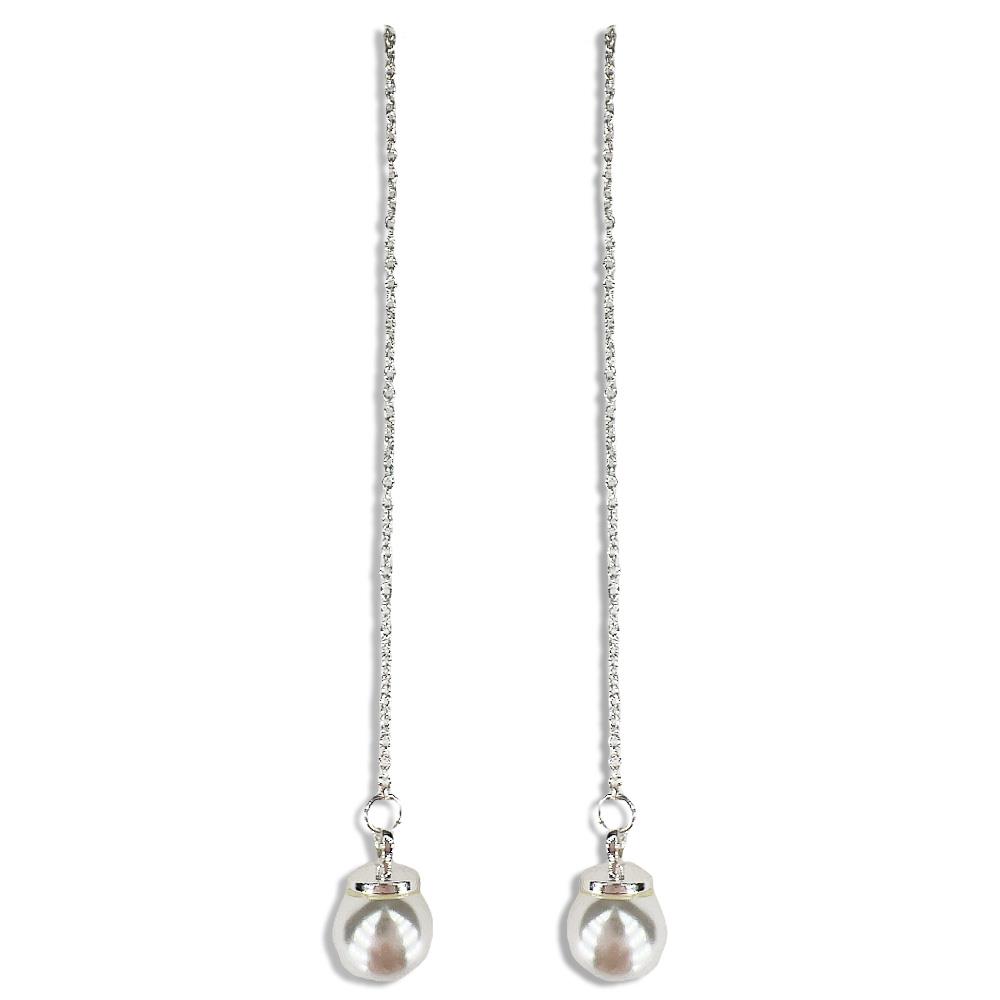 METAL CHAIN PEARL BEAD DANGLE EARRING
