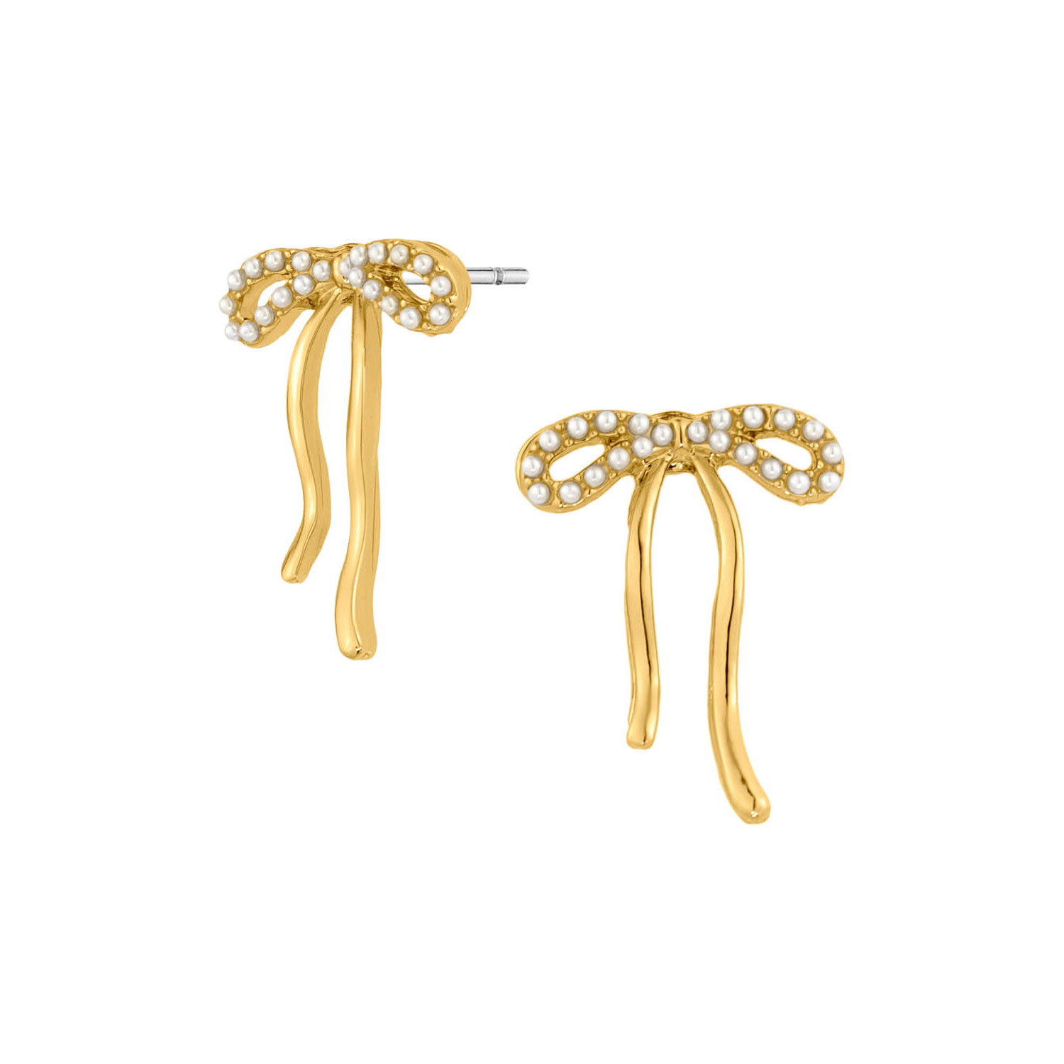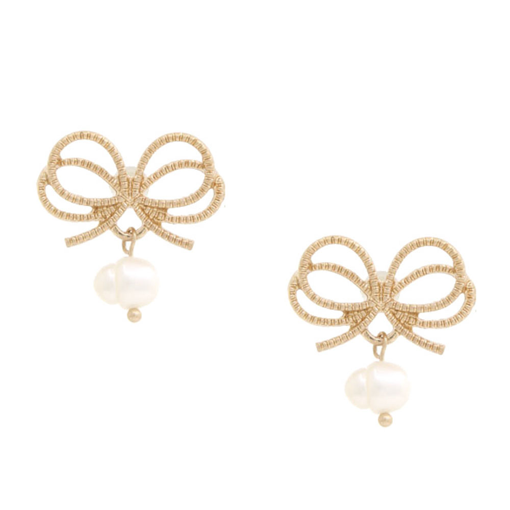 SODAJO BOW PEARL BEAD GOLD DIPPED EARRING