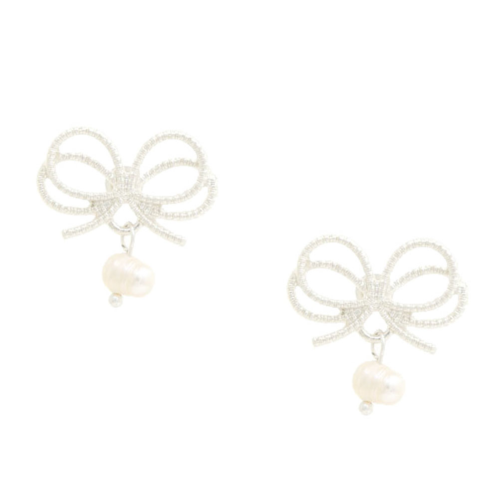 RIBBO BOW PEARL BEAD LINK DANGLE EARRING