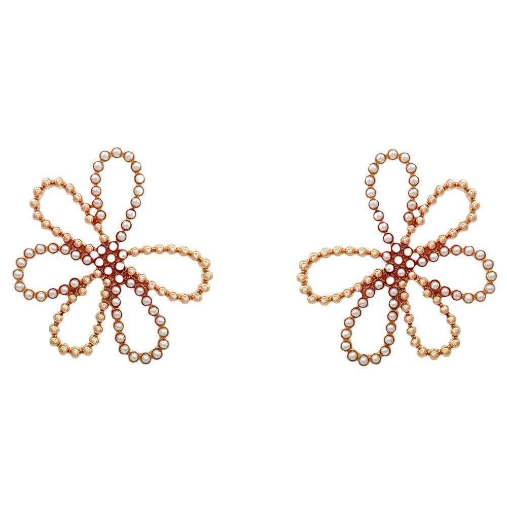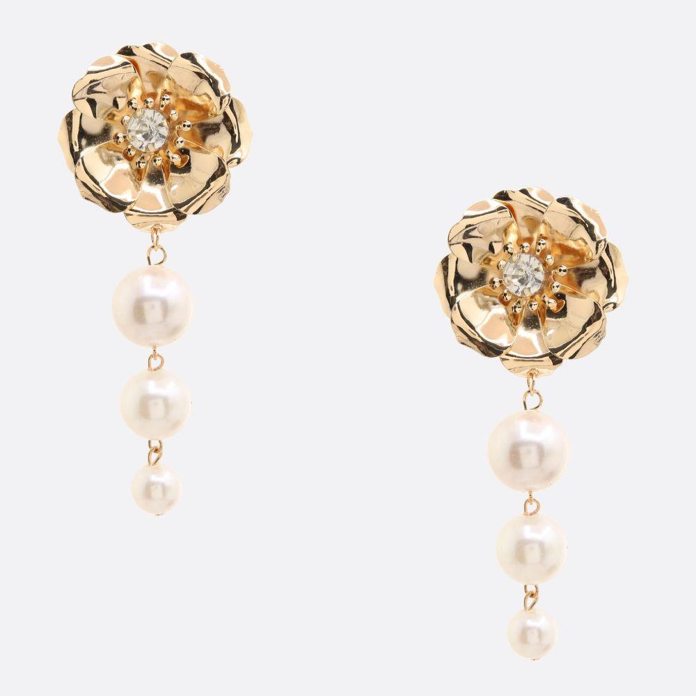 SODAJO FLOWER PEARL BEAD GOLD DIPPED EARRING