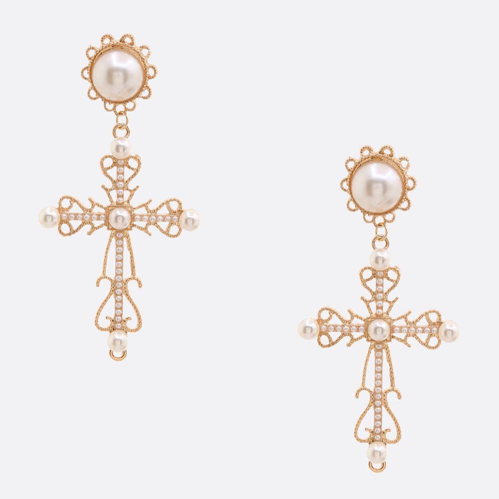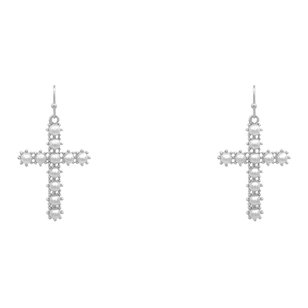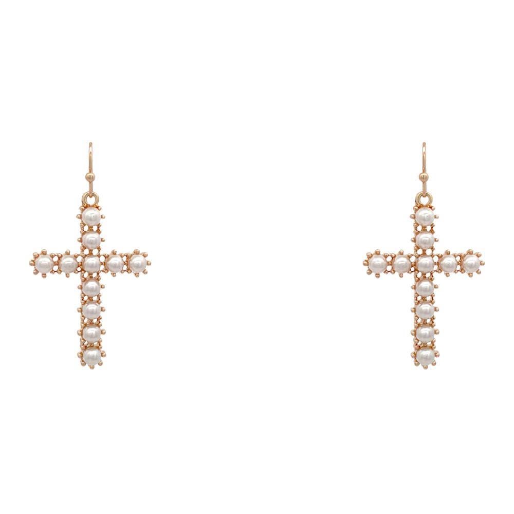 SDJ CROSS PEARL BEAD DANGLE EARRING