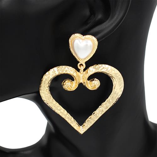 HEART SHAPE PEARL BEAD METAL DANGLE EARRING