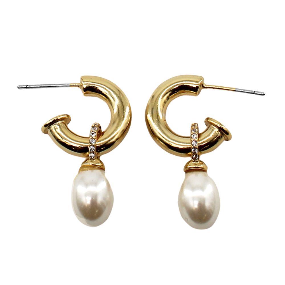 SODAJO PEARL BEAD HOOP GOLD DIPPED EARRING
