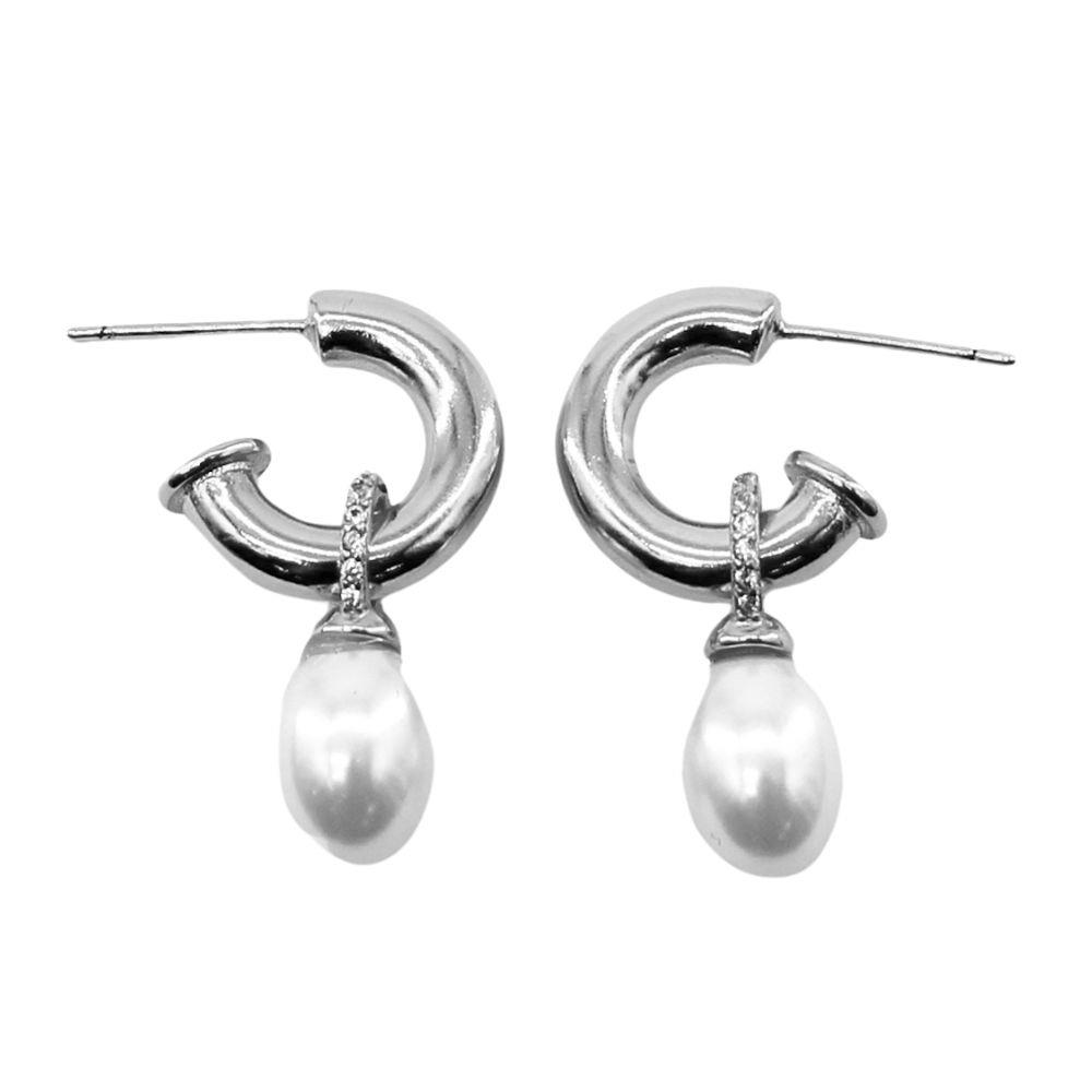 CRYSTAL ACCENT SHELL PEARL DANGLE EARRING