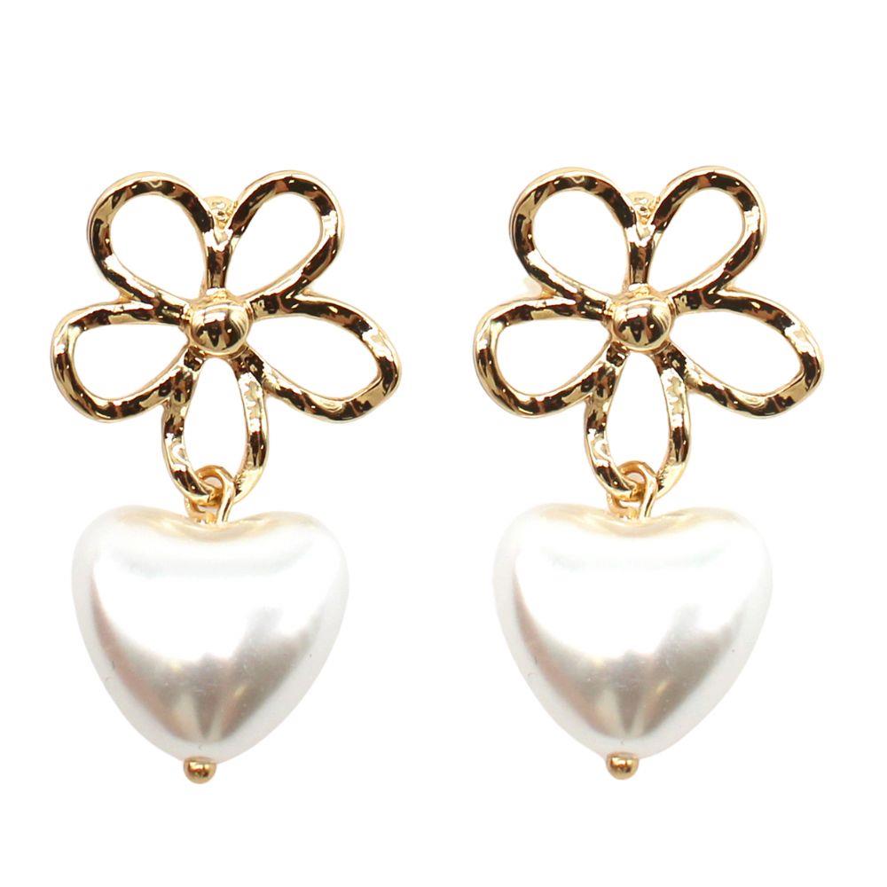 FLOWER HEART SHAPE PEAR BEAD DANGLE EARRING
