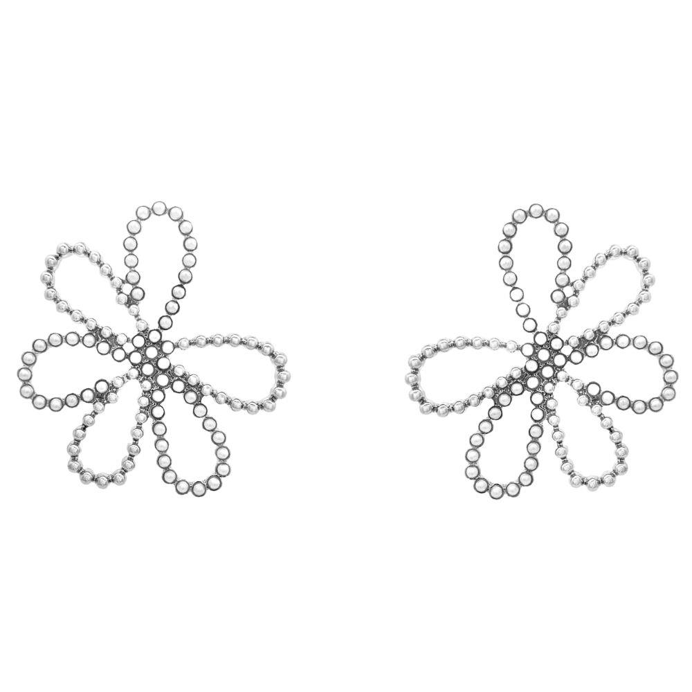 SDJ FLOWER PEARL BEAD DANGLE EARRING