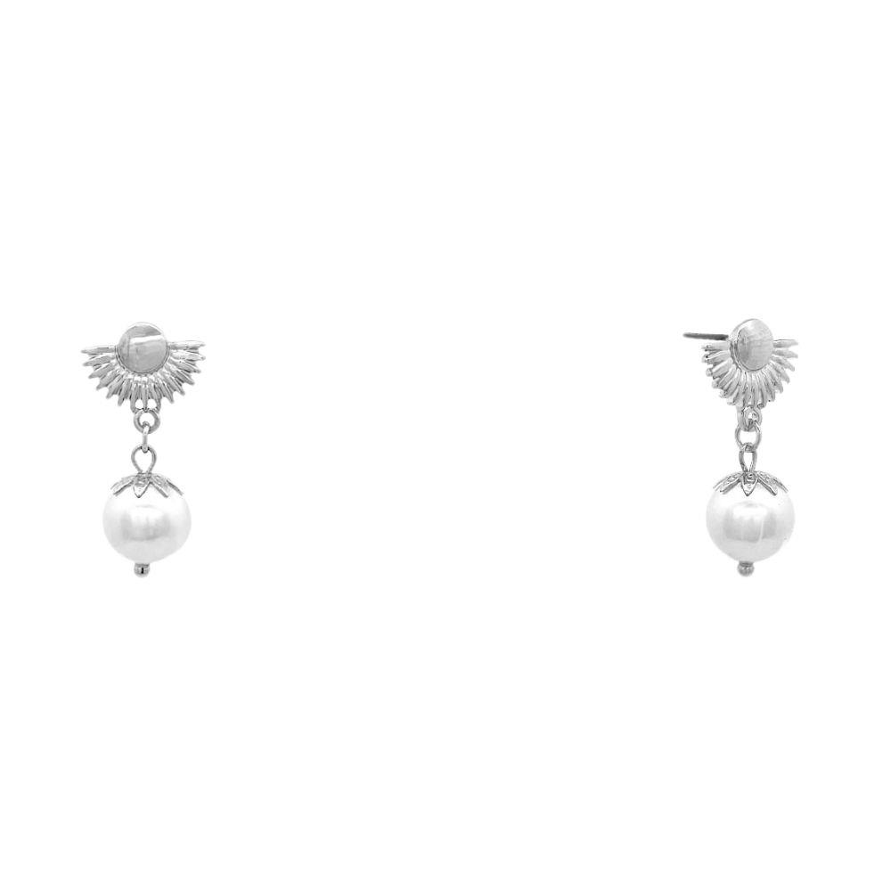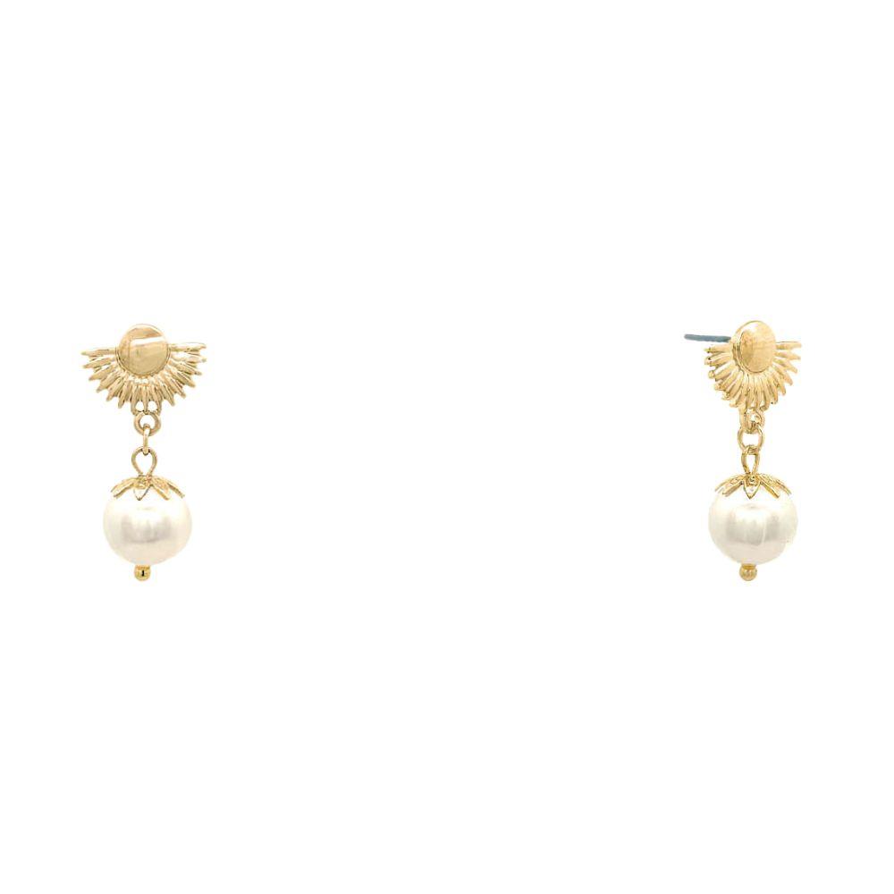 SUN SHAPE PEARL BEAD METAL DANGLE EARRING