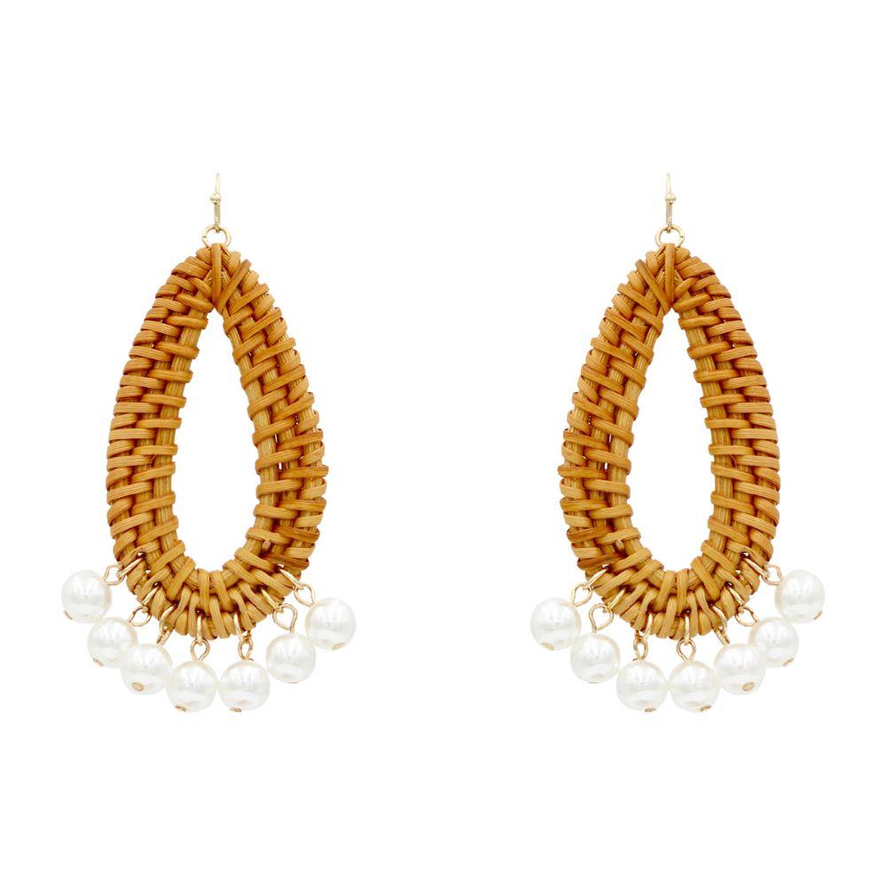 WOVEN TEARDROP PEARL BEAD DANGLE EARRING