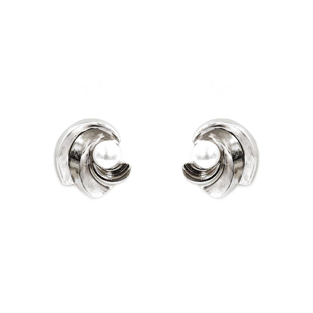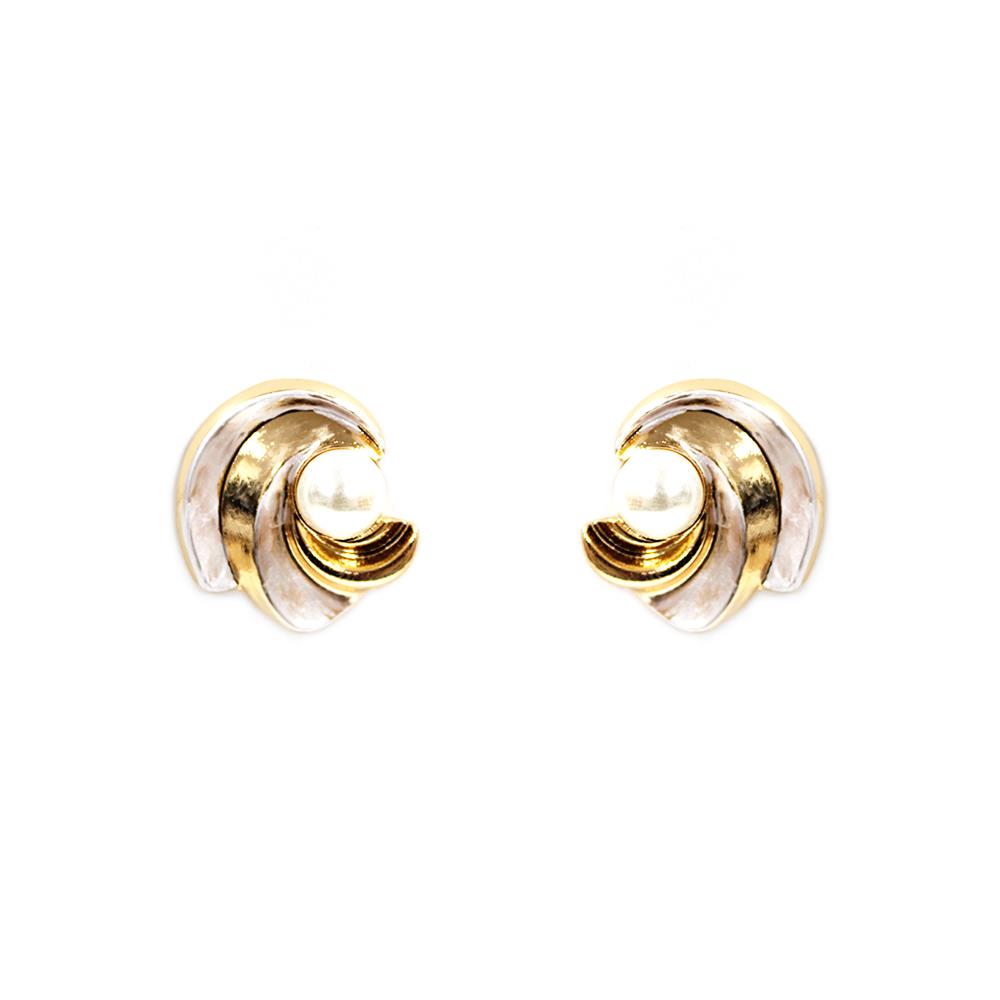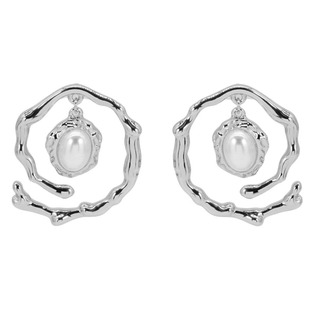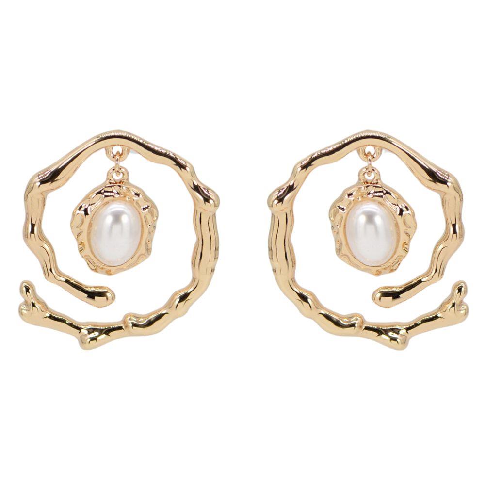 OVAL PEARL BEAD SWIRL METAL EARRING
