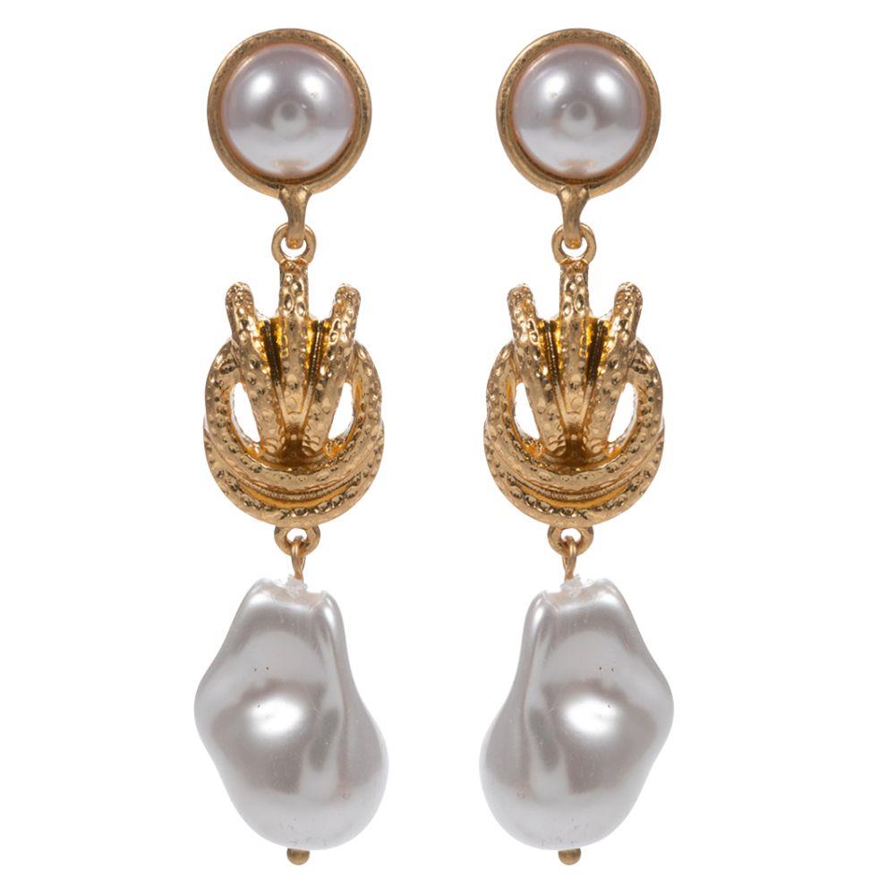 SODAJO PEARL BEAD KNOT GOLD DIPPED EARRING