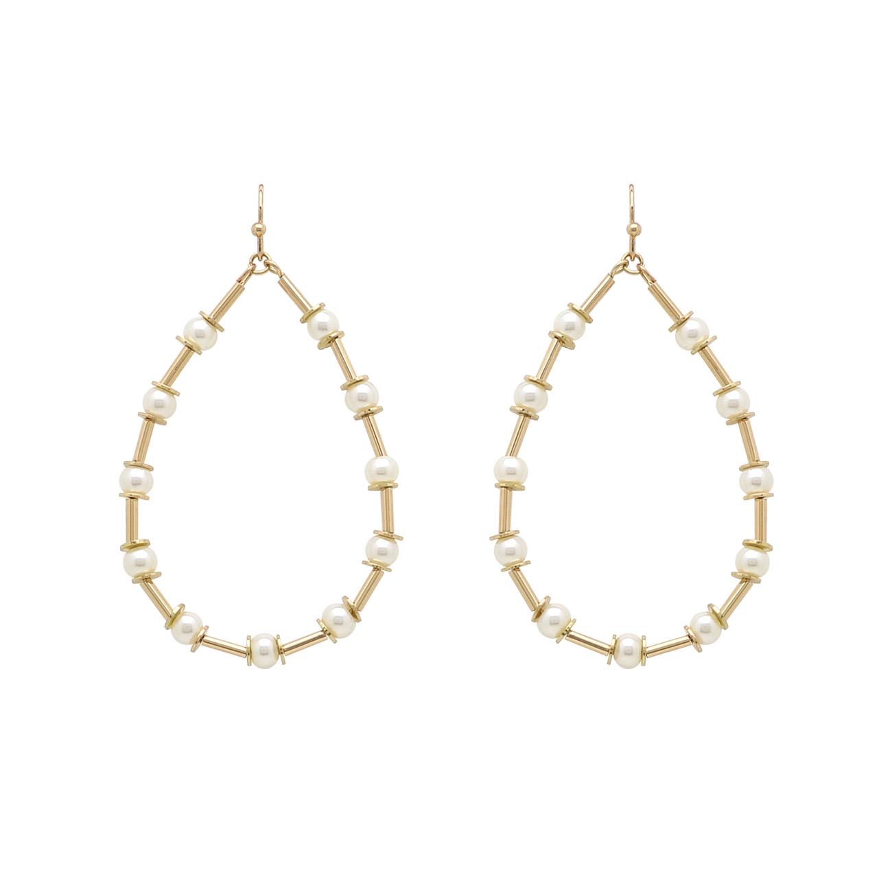SODAJO OPEN OVAL PEARL BEAD GOLD DIPPED EARRING