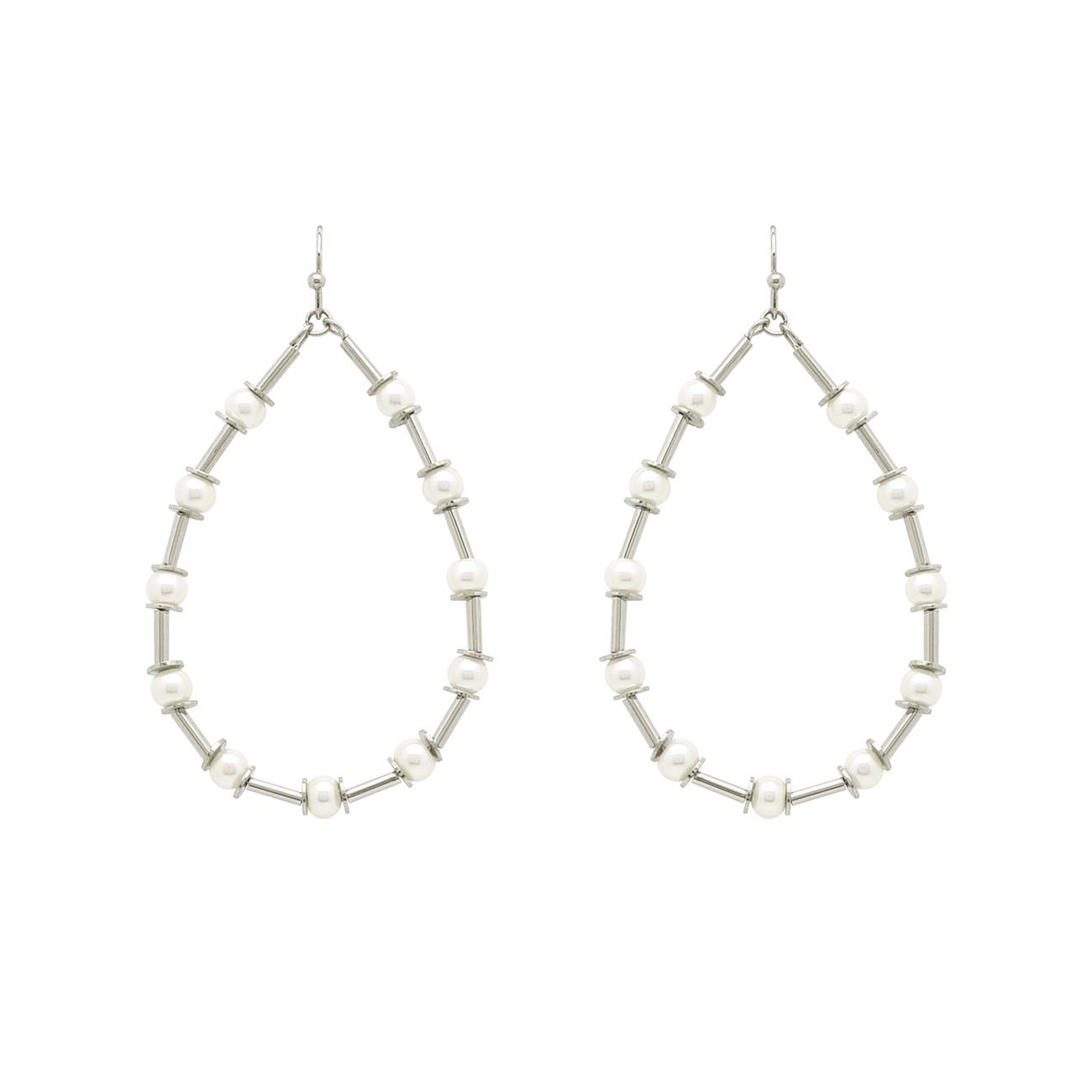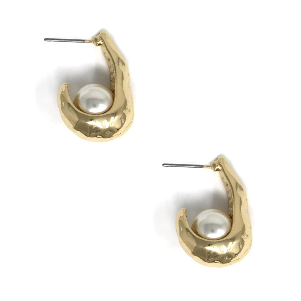 PEARL BEAD TWISTED METAL HOOP EARRING