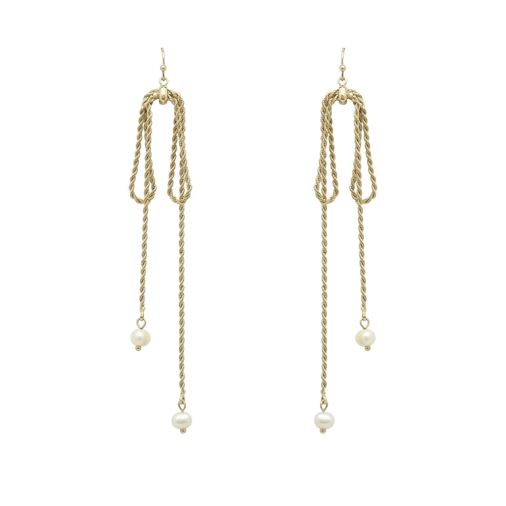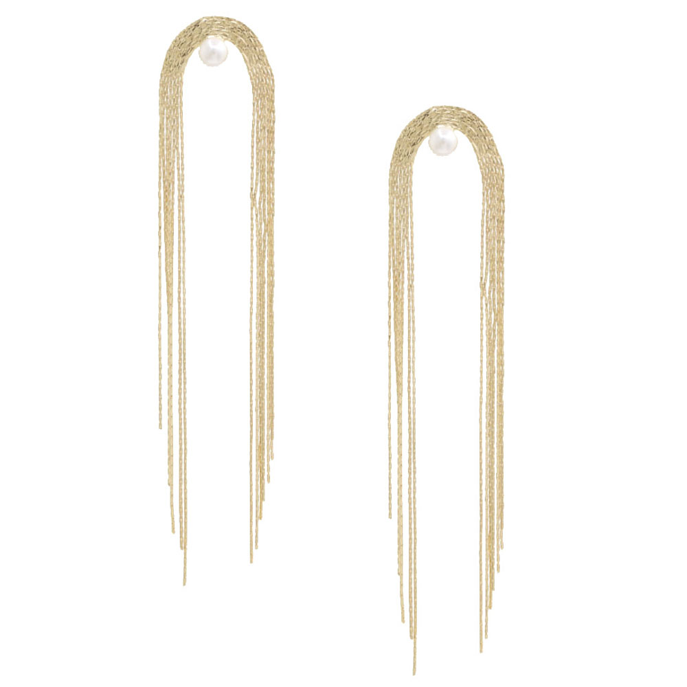 SODAJO U SHAPE PEARL BEAD CHAIN GOLD DIPPED DANGLE EARRING